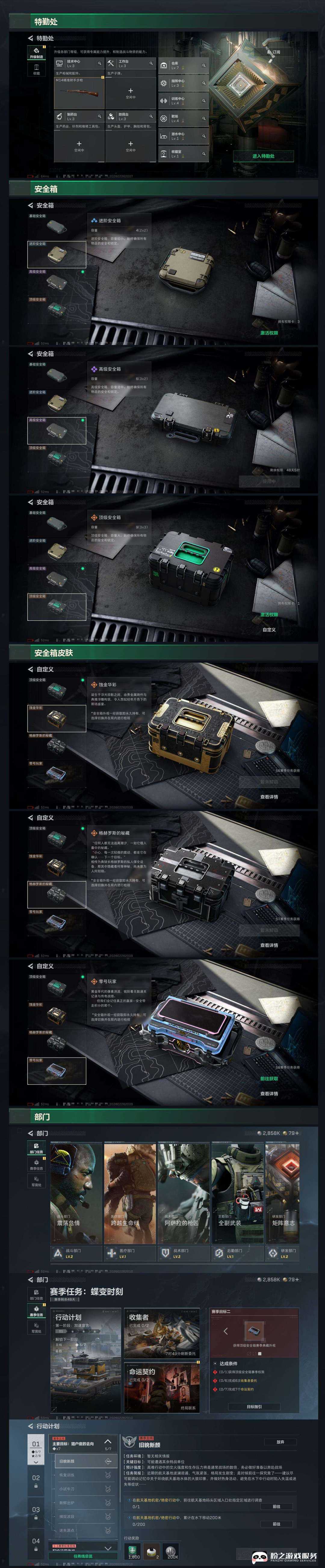 装备描述:凌霄戍卫6刀,蚀金玫瑰,维什戴尔,怜悯,暗星,蝴蝶刀,信条,典藏枪s8赛季2×3保险箱