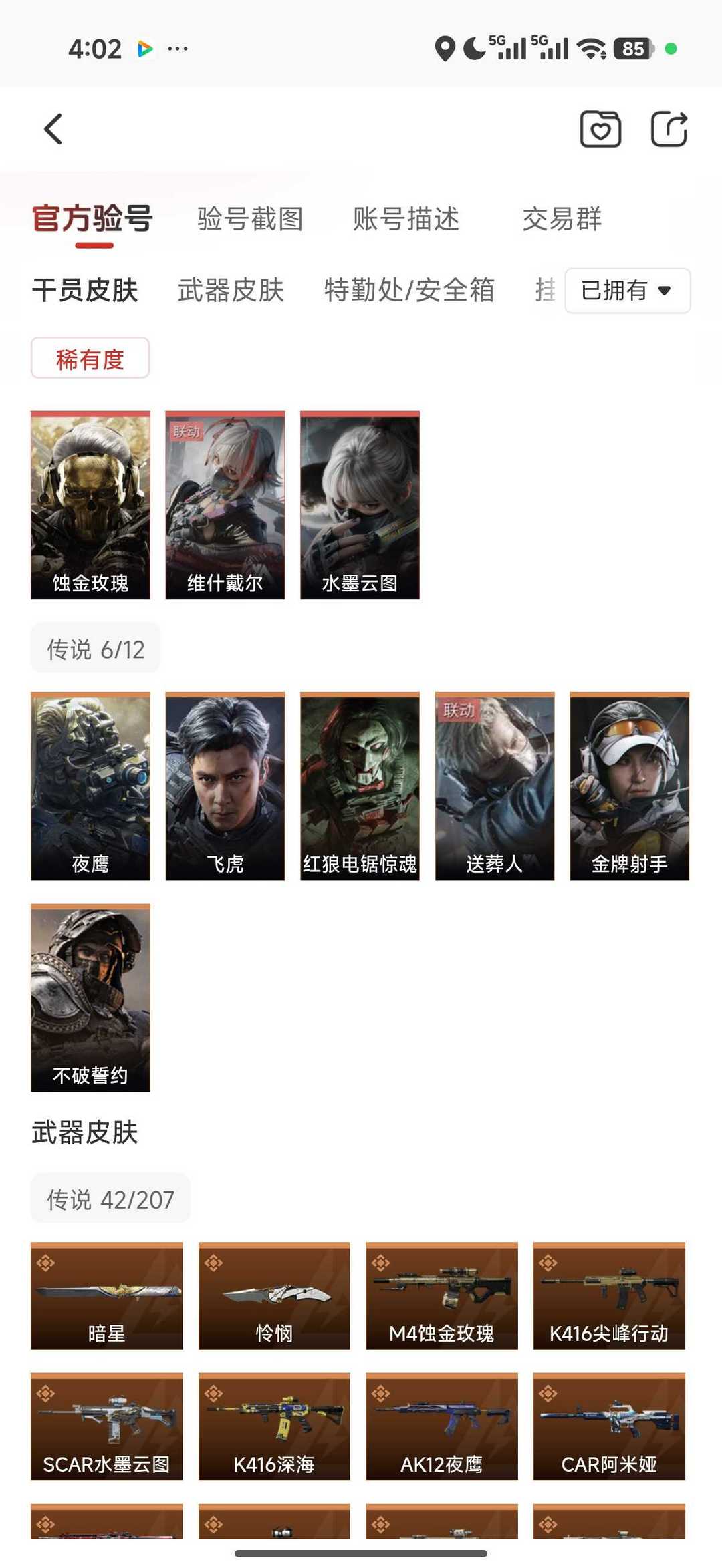 皮肤号 怜悯暗星9干员蚀金玫瑰维什戴尔水墨云图,吴彦祖,40款传说枪皮,s8赛季2×3保险