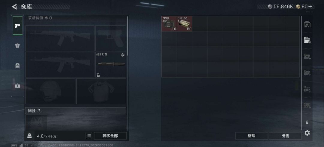 威龙红皮,号上五千六百多万,6套3个,awm10发,还有1组红单,和一把满改m14,4个大血包