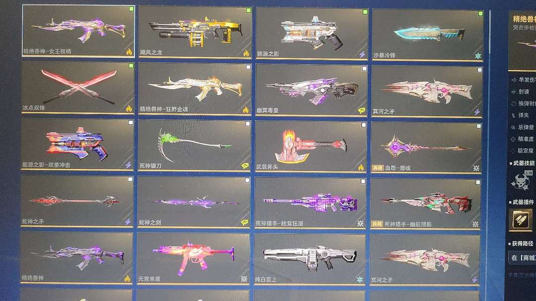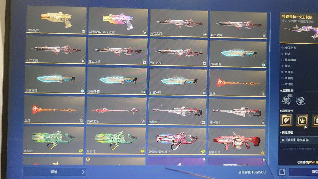 武器除了冰兽神基本全有,角色女王金战云胡八一黑寡妇 死神典藏 近战全毕业