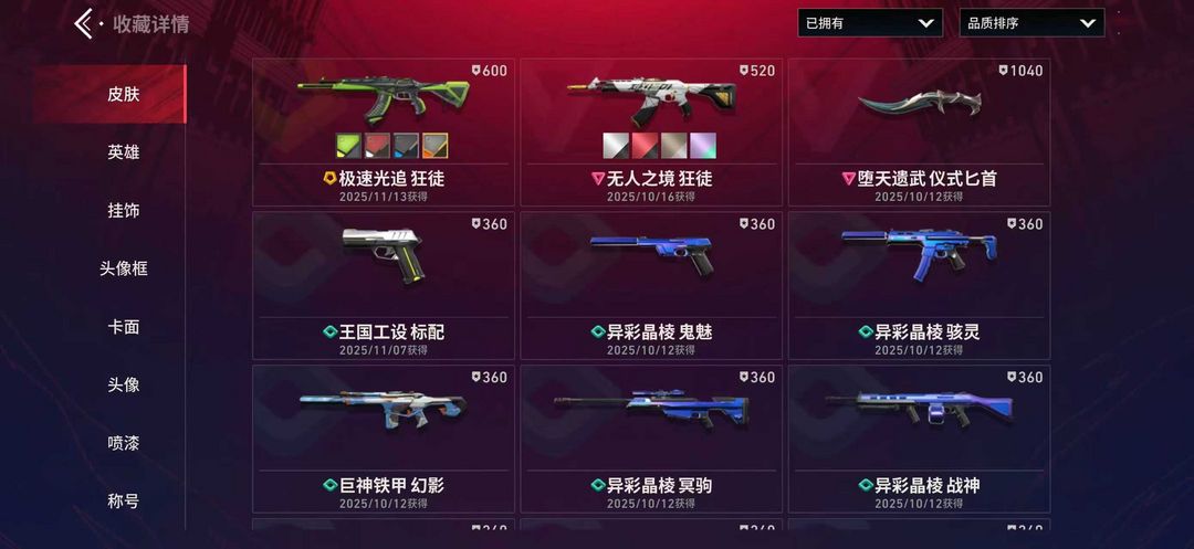 19级收藏家无人之境狂徒极速极速光追狂徒堕天遗武意识匕首