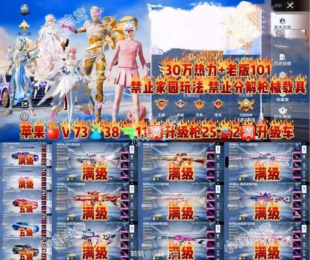 艾丽娅已秒苹果VX满素材大号战神框老101满级图卡盟♋4九级枪满级宾利满级杜卡迪♋3辆五级车78