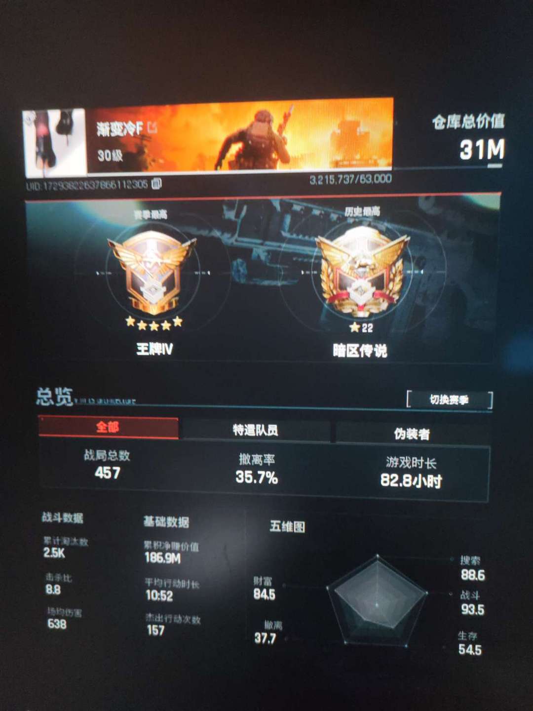 暗区突围pc 30级 仓库价值31m仓库物资都可以用 纯币534w
