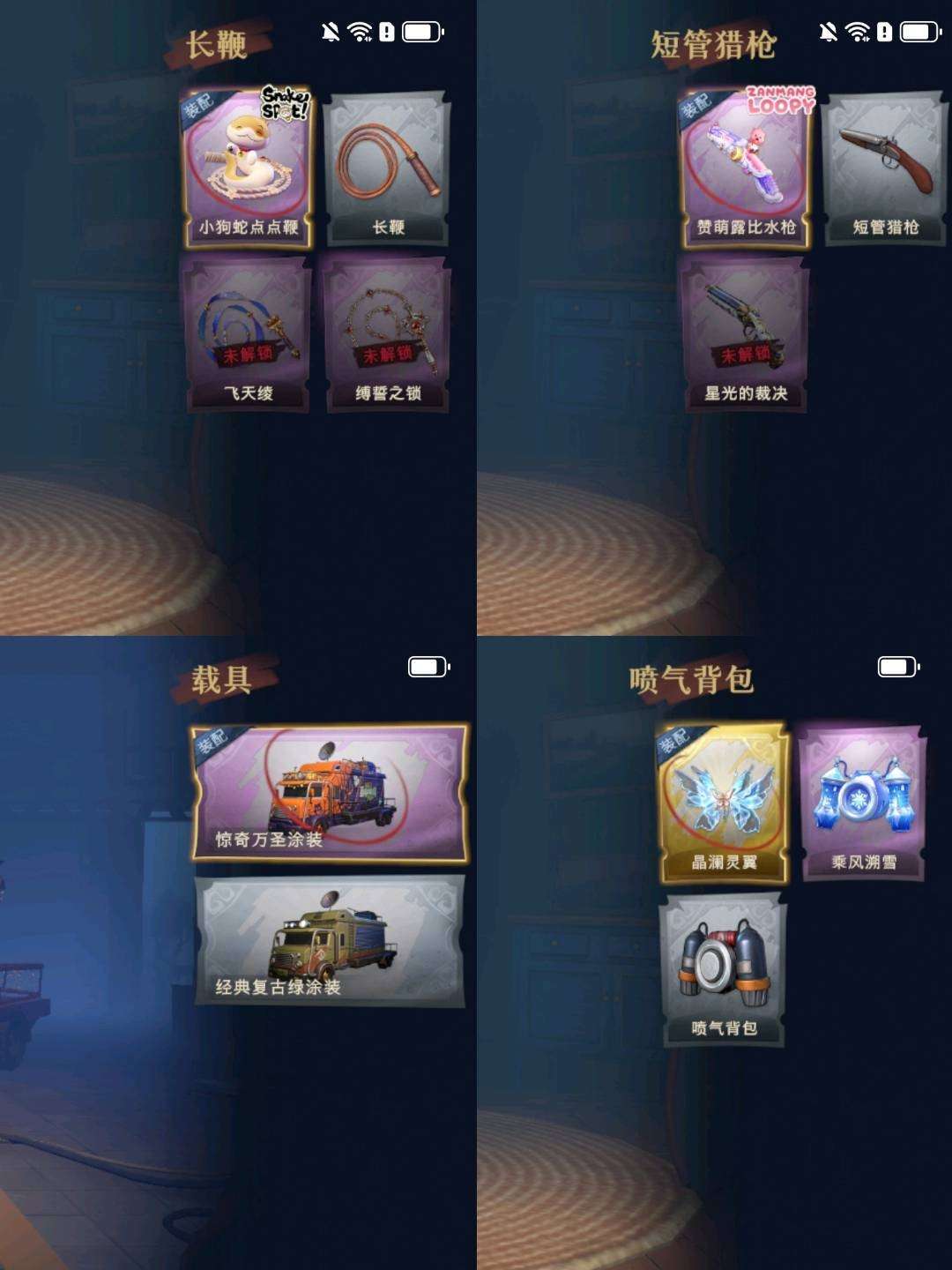 装备描述:【幻梦皮肤】巫铃儿-镜生遗梦 【金色皮肤】零-渡鸦公爵、逍遥-莲华渡、薇薇安-圣光之谕、小黄-遗失的童话、巫铃儿-镜花辞 【紫色皮肤】爱丽丝-甜梦派对、艾伦-绒绒对决、莉莉-莓果陷阱、小黄-异色序曲、阿念-迷途僵宝、莉莉-除妖小师妹、莉莉-情公主、艾伦-水王子、爱丽丝-冰公主、小黄-罗丽、薇薇安-白光莹、零-青云逸歌、逍遥-绣春逍影、小黄-呱呱雨衣 【道具皮肤】喷气背包-晶澜灵翼、腰包-月下莲台、桃木剑-凤鸣九天、刺刀-碧络琅环、铲子-圣心之泪、铲子-赞萌波板糖、音响-happy猫、短管猎枪-赞萌露比水枪、专业手电-云端梦想计划、黄牛能量饮料-珍珠芭乐莓莓、夜视仪-金丝眼镜、黄牛能量饮料-青玉抱丹、摸金符-花落精绝、传送按钮-幻宠之门、铲子-龙鳞、额外的背包-飞花令、除颤仪-弦外之音、刺刀-小鲨匕首、腰包-惊魂娃娃、转轮手枪-新星时代、桃木剑-最后的独角兽、腰包-宝剑八、摸金符-祝祷词、长鞭-小狗蛇点点鞭、刺刀-紫气东来、急救包-蔷薇物语、电击枪-甜蜜泡泡枪、喷气背包-乘风溯雪、音响-鸣沙鼓、传送按钮-昆仑镜、铲子-卡皮巴拉小黄豚铲、葫芦-伏妖塔、背饰-晚安仪式、背饰-潮汐小海