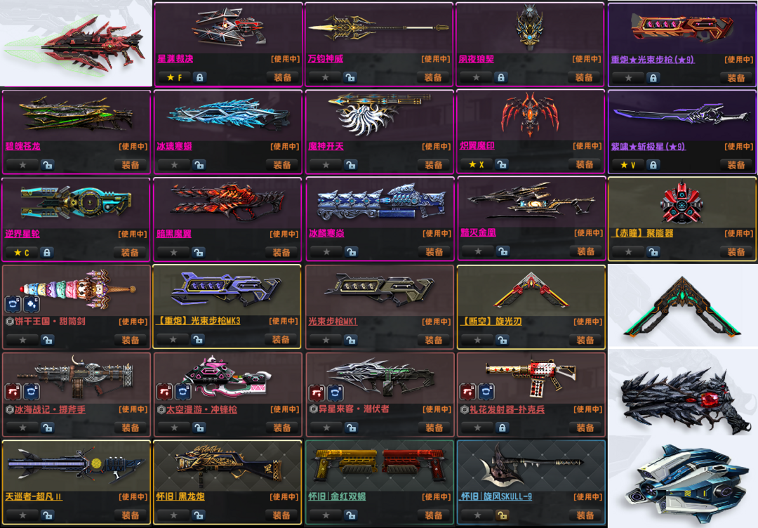 紫钻】赤血龙骧】火狐黯火狱火】闪电野牛】全史诗】冰璃寒蟒】夙夜狼契】星渊裁决】万钧神威】马年神器