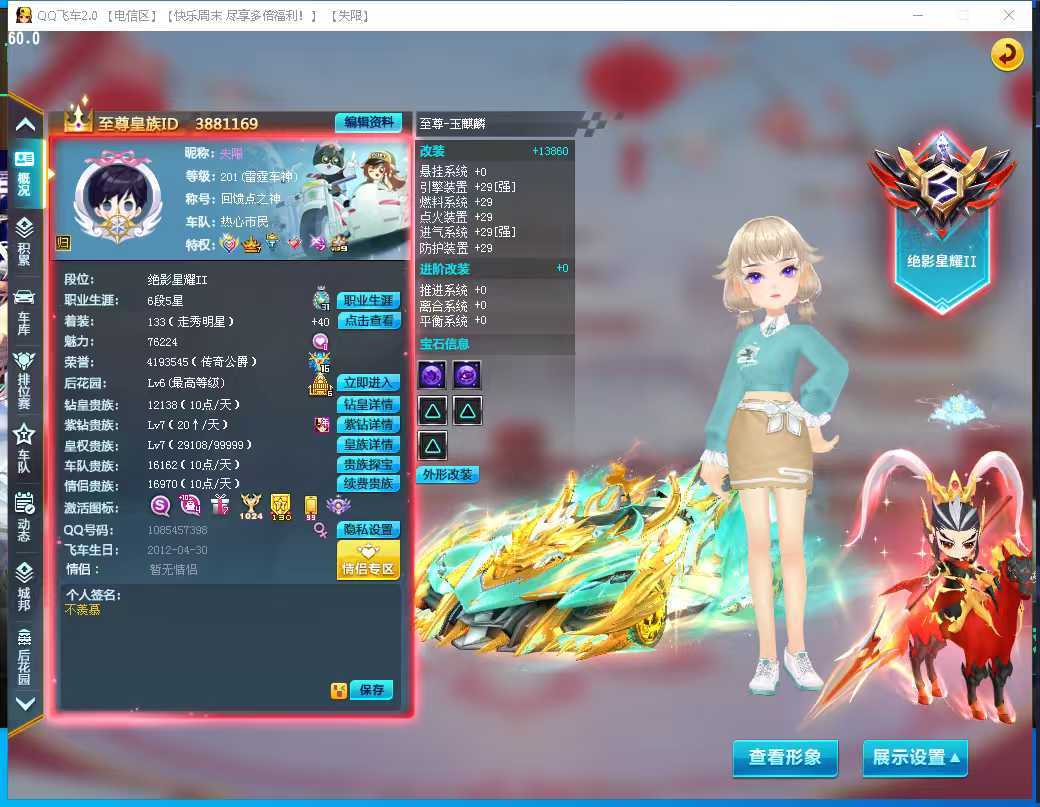 游戏区服:QQ飞车-电信-电信