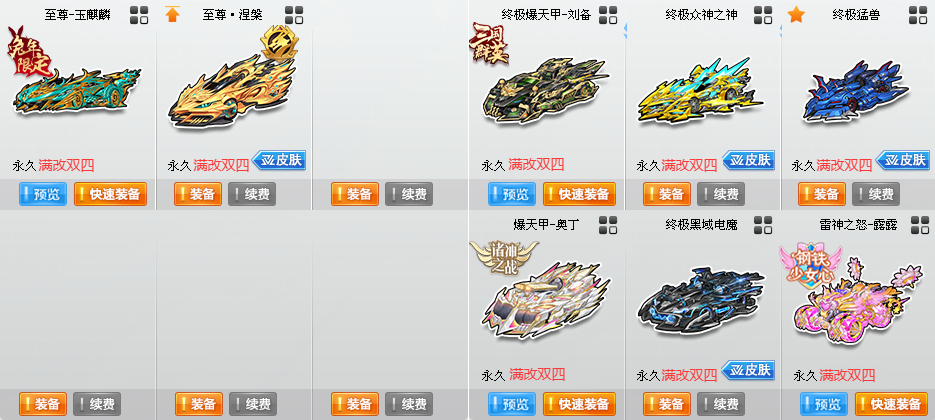 限制: 撤单率<70%才可租用此帐号装备描述:〓S〓12辆〓至尊火麒麟-玉麒麟、至尊涅槃、终极爆天甲-刘备、爆天甲-奥丁、雷神之怒-露露 〓T2〓2辆〓 〓A〓22辆〓 〓飞碟 〓骑宠〓1只〓雪凝公主+10 〓其他〓8W魅力、1700W荣誉、紫钻7、皇族6 〓女〓60页套装〓 〓男〓50页套装〓