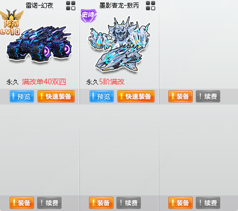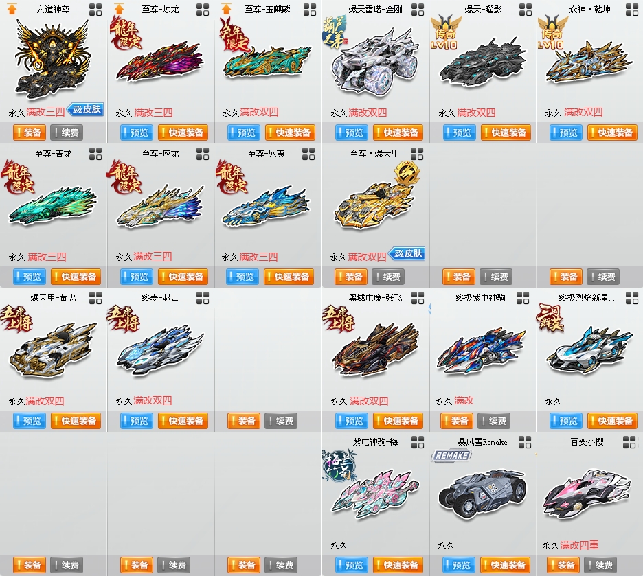 限制: 撤单率<70%才可租用此帐号装备描述:〓S〓24辆〓至尊火麒麟-玉麒麟、至尊影龙-烛龙/青龙/应龙/冰夷、爆天雷诺-金刚、爆天甲-曜影10阶/黄忠、众神之神-乾坤10阶 〓T3〓六道神尊 〓T2〓幽冥剑圣、黑暗风暴 〓A〓30辆〓雷诺-幻夜10阶 〓骑宠〓4只〓雪凝公主+10 〓其他〓14W魅力、1100W荣誉、紫钻7、皇族7 〓女〓70页套装〓 〓男〓50页套装〓
