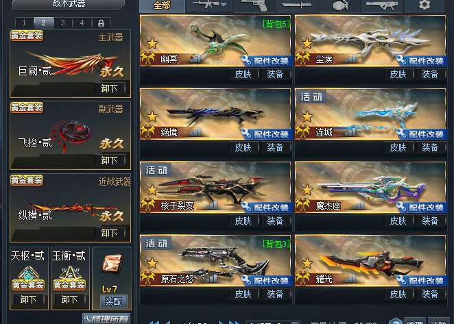 装备描述:满配:奏鸣 鬼刃 蔓木 闪击 幽冥 尘埃 绝境 魔杰座 两把幻锋(双皮) 岚翼 美杜莎 棱晶 海神 焚风 两把玄天 领域 白龙。原石二配 耀光二配 核子三配 空间掌握三配 矩阵3配 降临三配 连城三配 镭射三配 六红魔童六红阿瑞斯战力1250w 满级丧钟 飞踢 巨阙贰 广陵贰 魅影贰