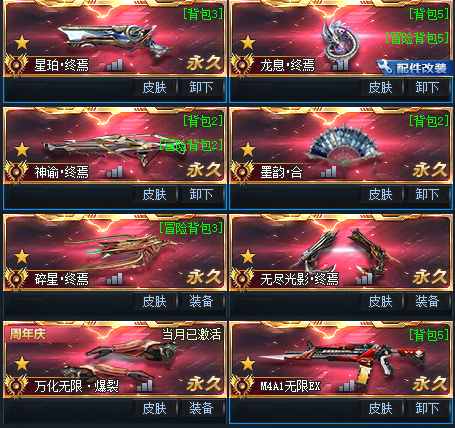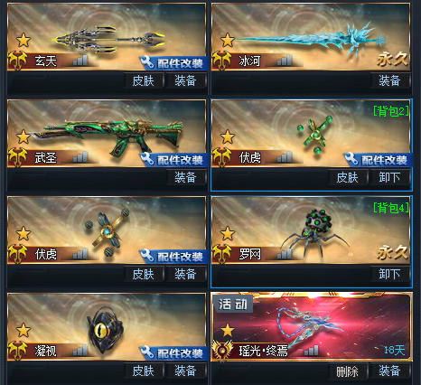 装备描述:变异嘎嘎爽,龙息星魄神域扇子,变异300血,两撼天贰,一撼天一,两个带森罗皮肤,双满配伏虎,收藏武器皆为满配,天枢玉衡,宇宙雷,两仪万象