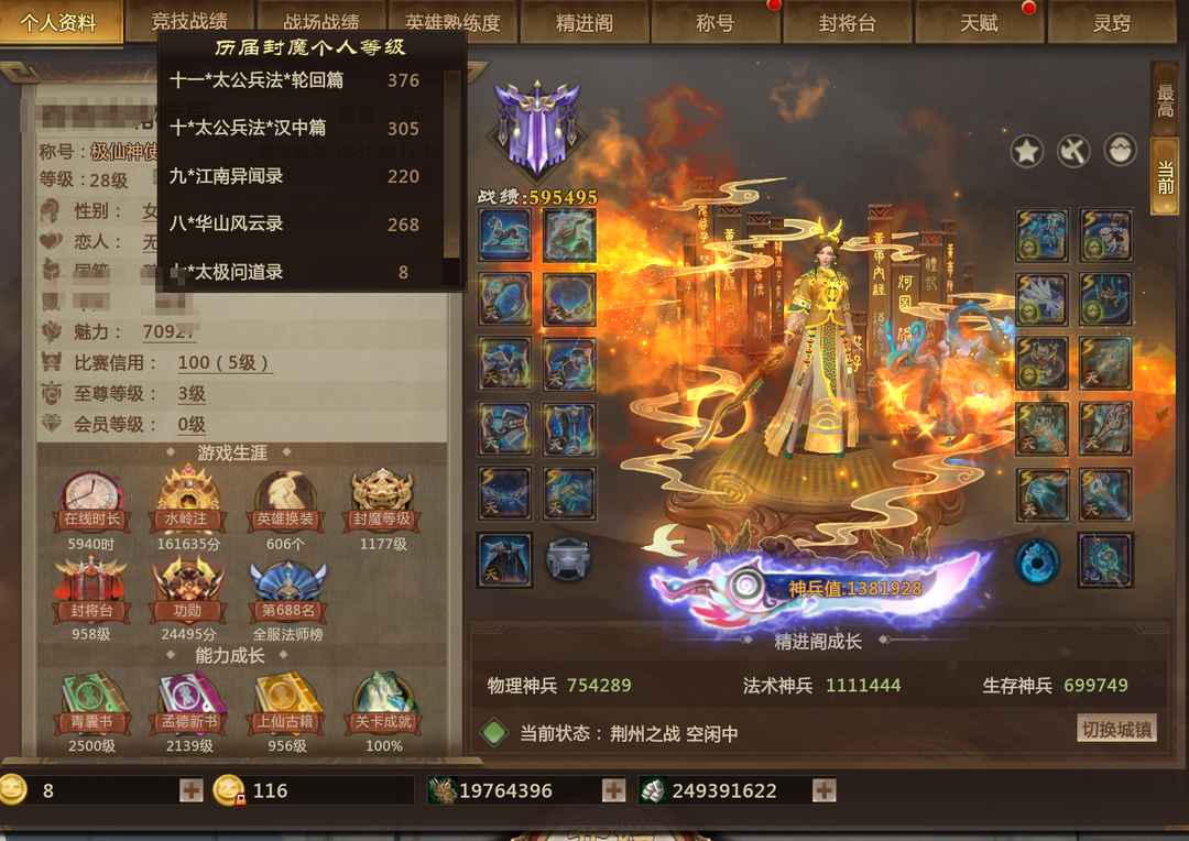 606皮肤138W法师神4灵尊2神话幻神.金星灵鬼帝大圣翅膀九尾尊5无压力
