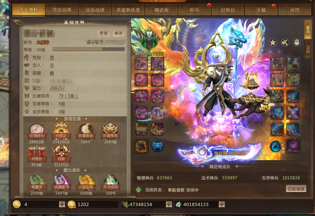 装备描述:30级称号 至尊4(261星标)123W神兵 4神话 双抗322/435 华翠坐骑翅膀 4星灵1星月 玩具有 5万古 双蓝灯管 圣诞套 海王射潮 无极 鸡毛掸子 恶魔之曈 熊猫转转 阎罗王之魂 大声翅膀 九尾 小马 30W魅力 584皮肤 4700W士兵 金牌改名卡录梦平台——点击开始游戏——进入游戏——出现二级密码后——按F9——鼠标迅速输入1234 确定 (1234跟号主财产无关)——二级锁解开— 游戏秒退 ——用上号器在次点击开始游