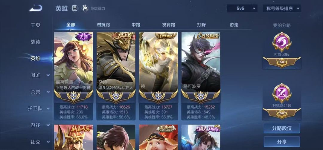 2月在榜大国标娜可露露⭐巅峰打野万强⭐历史③国服镜马超马克⭐超多省级限定皮肤⭐可排位禁巅峰