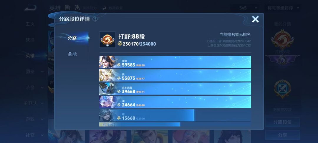 正式服在榜88段打野⭐1.6w五小国标镜澜宫本露娜⭐超多省级限定皮肤⭐可排位