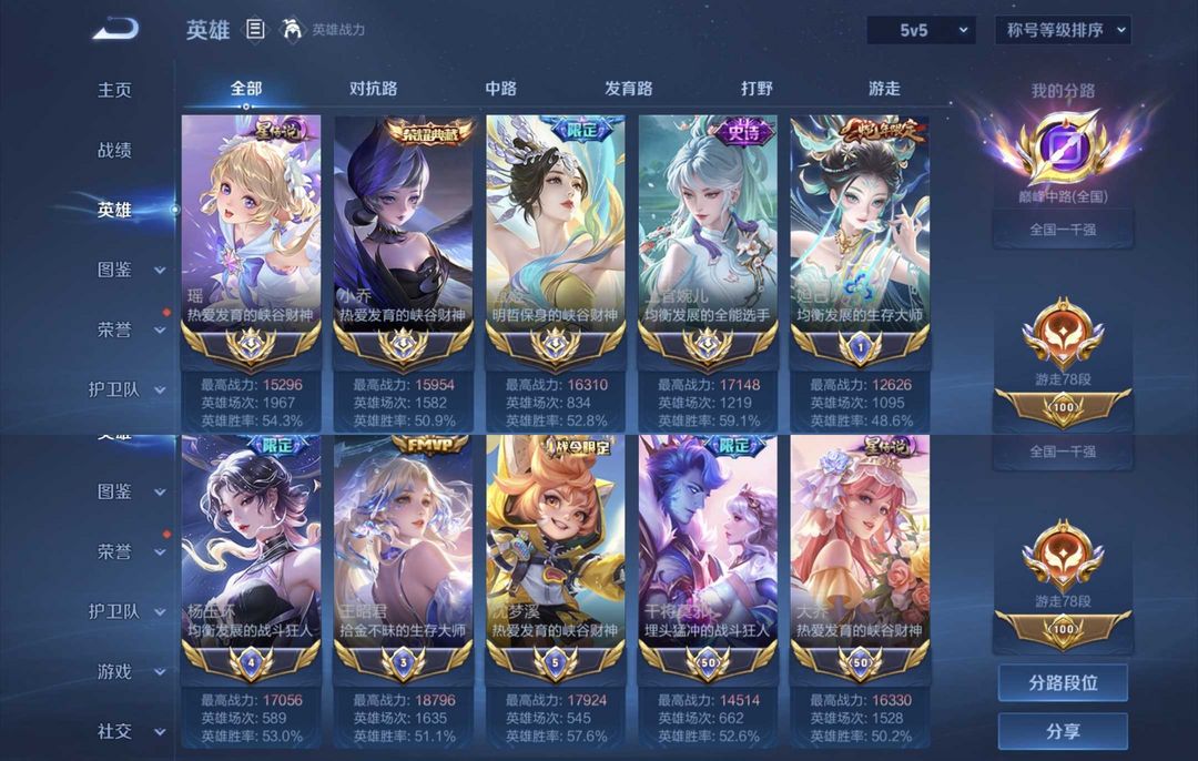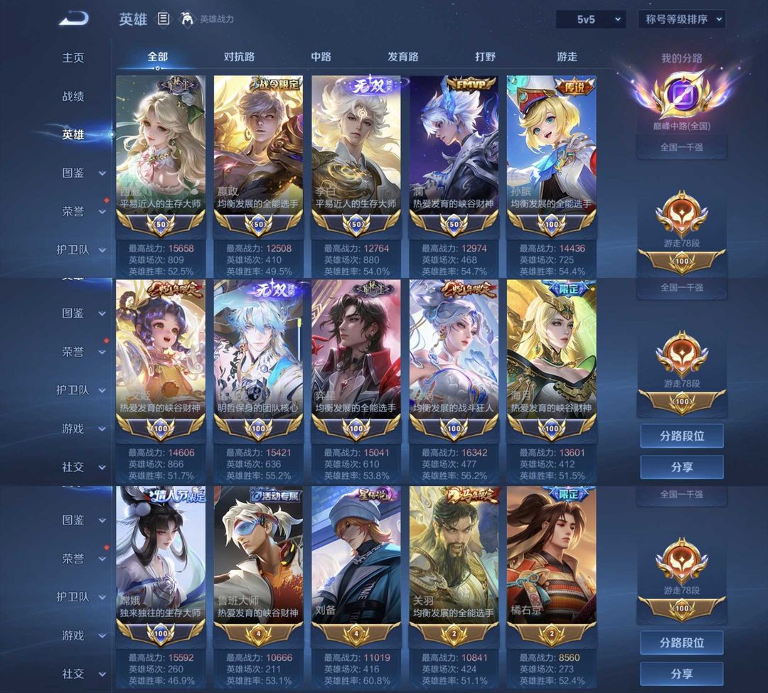 法辅号✨109段中❤️新皮全秒✨77段游走⭐满级全能大师♥21国标历史大国瑶