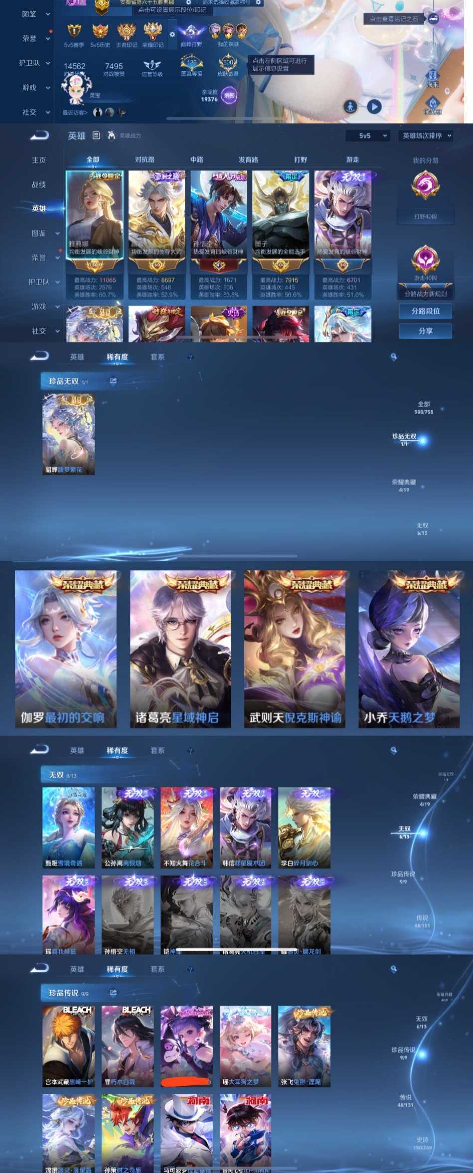 限制: 租号2次及以上 | 撤单率<49%才可租用此帐号装备描述:时间到了还登录白玩或者顶号全部改密拉黑处理永不解除,顶号机器会秒禁玩改密,顶号不仅拉黑还没得玩,赚三两块不容易,请理解谢谢。 ❤❤❤❤❤❤❤❤❤❤❤❤❤❤❤❤❤❤ 请勿开挂,挂机,送头,骂人,撤单后游戏等如有违规永久拉黑永不解除。 重置二级密码不要费劲了,号主每天都会上号查看,多行不义必自毙,人在做天在看,多做好事多自律,少做缺德事。 该号英雄129个皮肤500个,珍品无双1个,典藏5个,无双6个,珍品传说9个,星传说6个,传说48个,史诗150个,祝您游戏愉快~