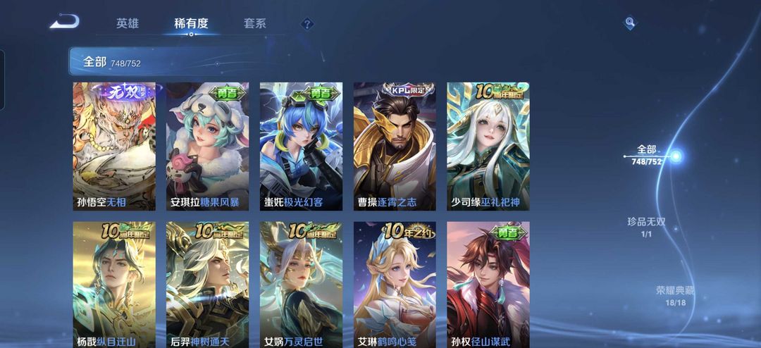 748满皮肤♥猴子无相无双凯神罪诸葛亮无双白泽〖貂蝉穆夏♥馥梦繁花〗满珍品传说天幕✨满水满星