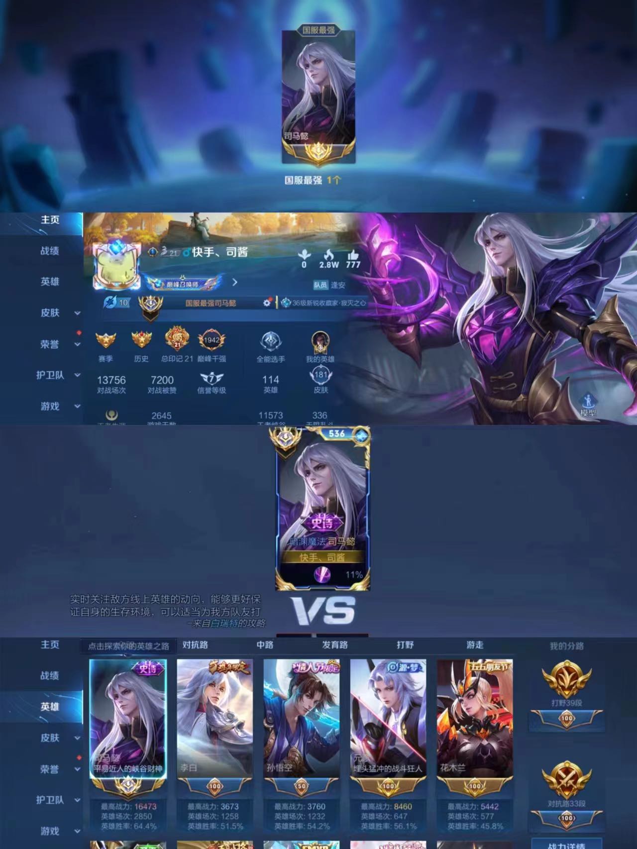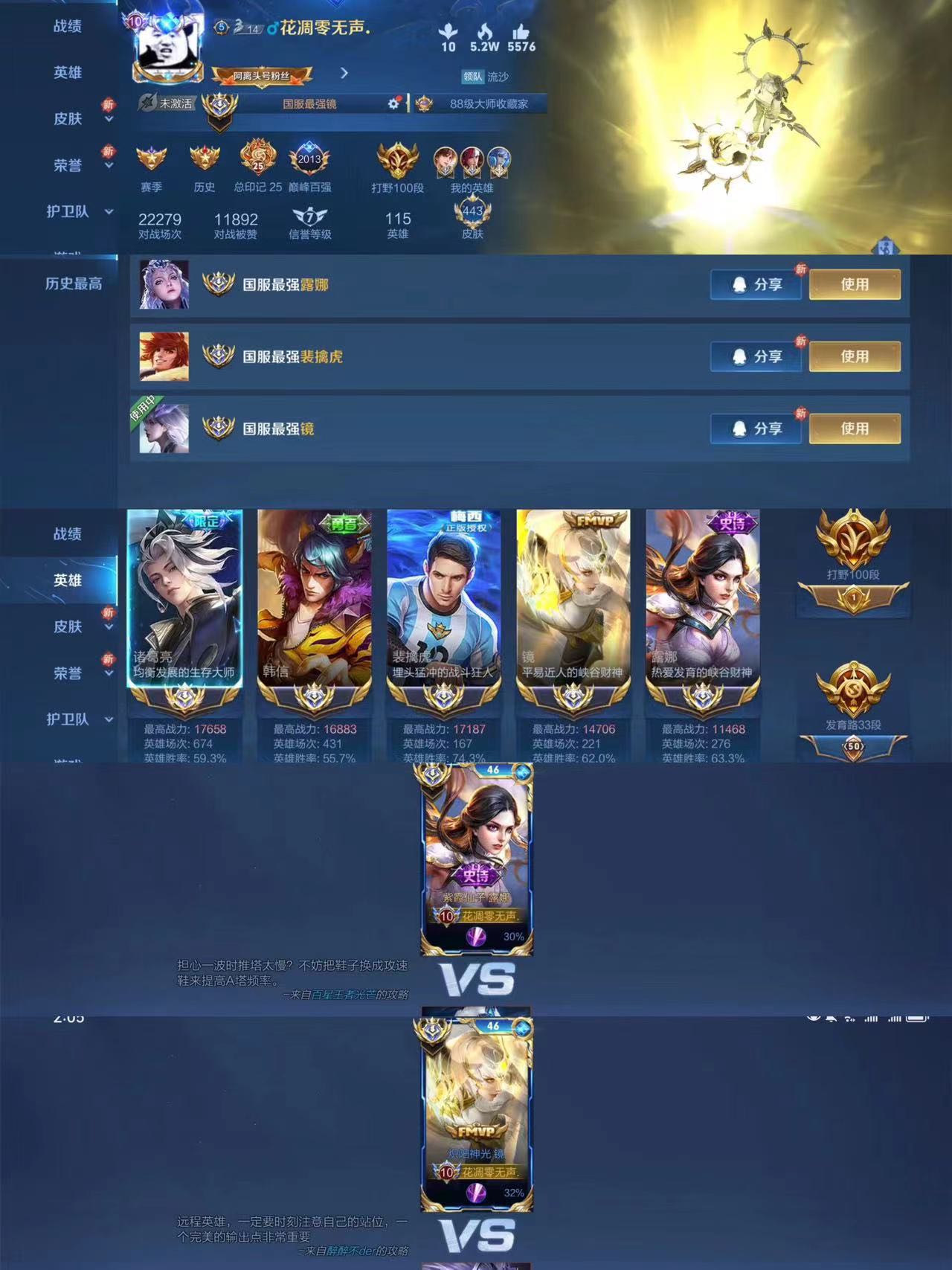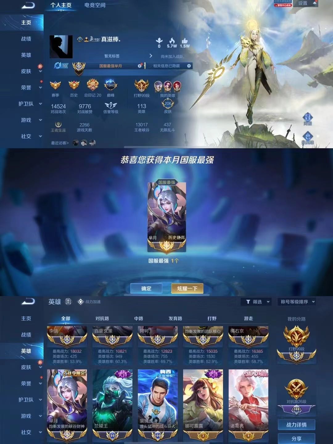 十月国服镜澜曜巅峰前十/国服马超木兰/国服韩信李白露娜/大量十月国服百段分路主播职业logo