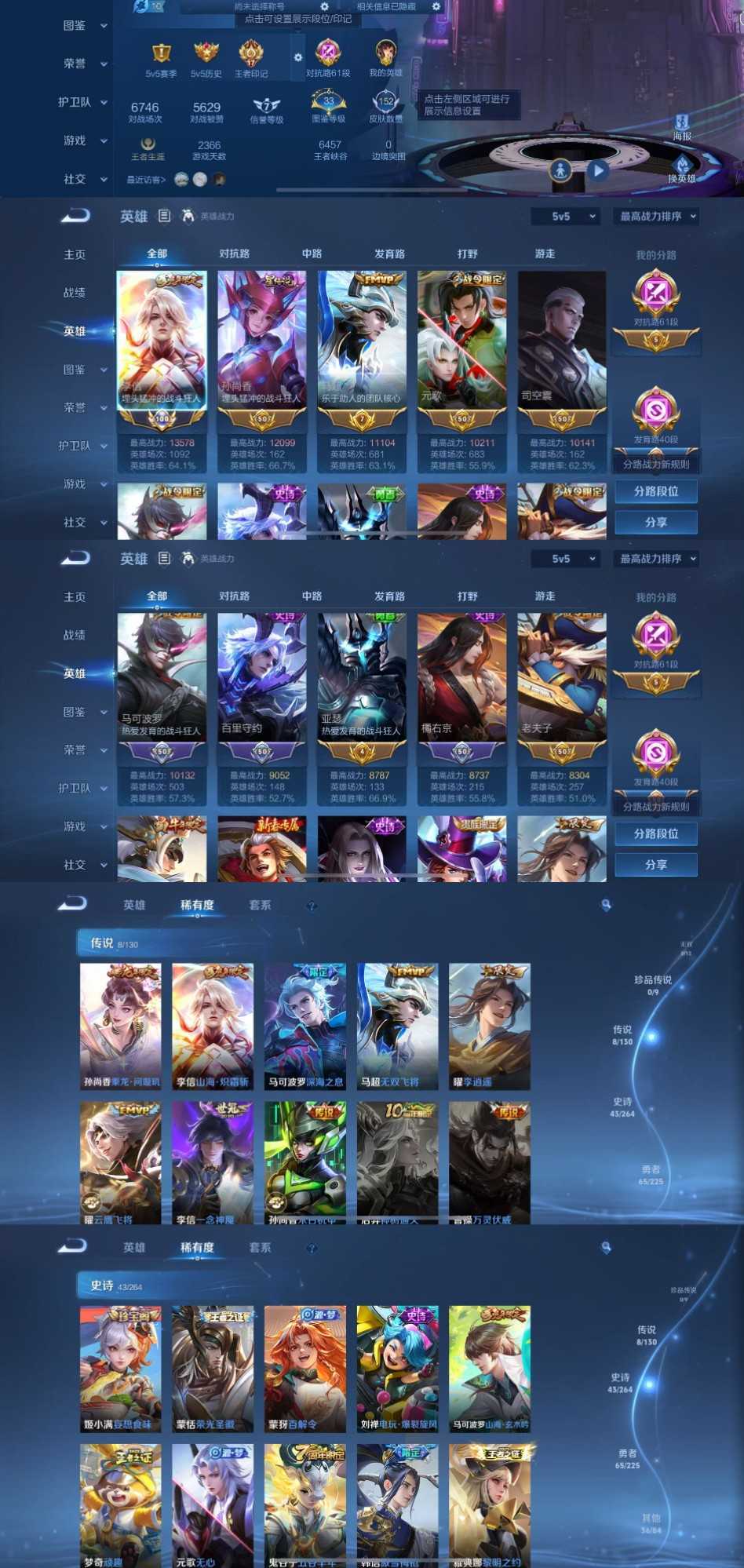 61段对抗路✨国服李信万战马超✨万战元歌万战司空震✨万战孙尚香万战马可✨问璇玑炽霜斩✨无双飞将李逍遥