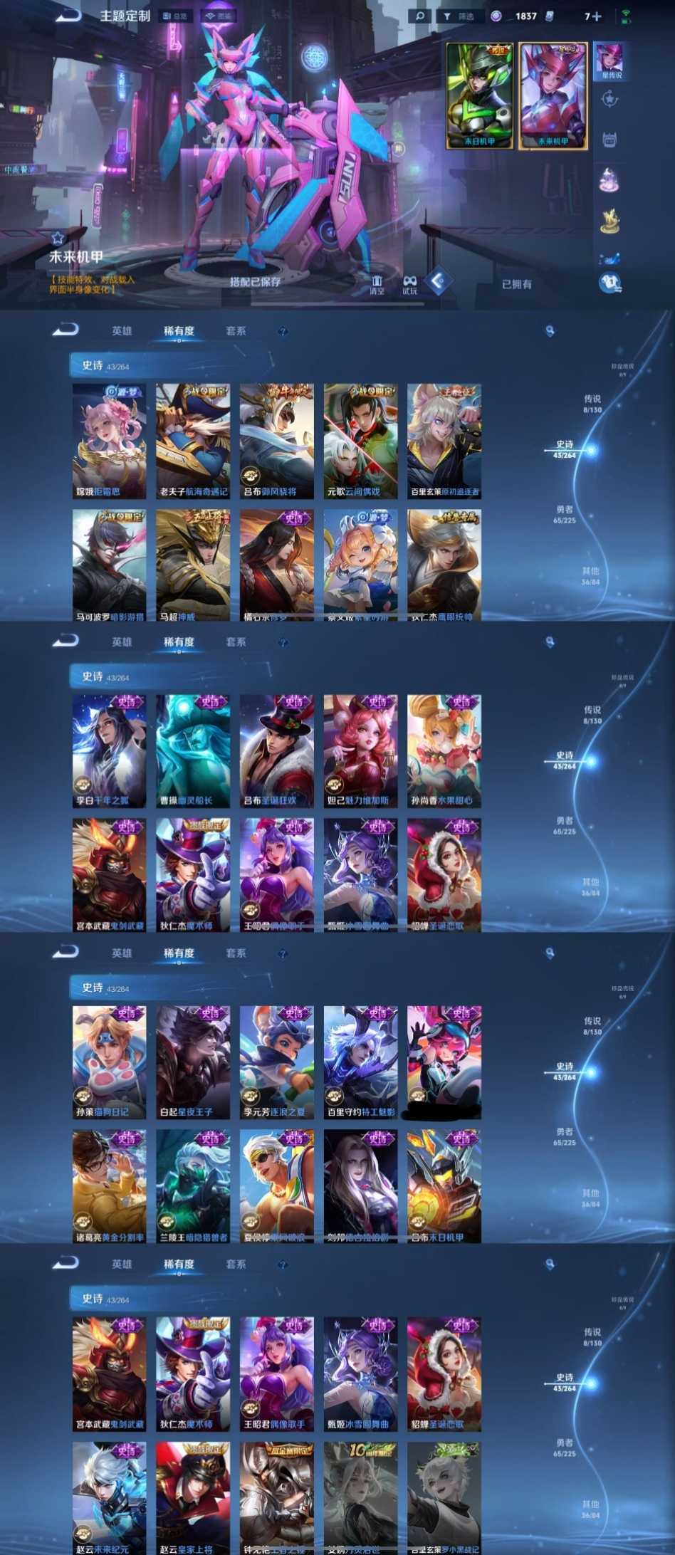限制: 租号1次及以上 | 撤单率<49%才可租用此帐号装备描述:时间到了还登录白玩或者顶号全部改密拉黑处理永不解除,顶号机器会秒禁玩改密,顶号不仅拉黑还没得玩,赚三两块不容易,请理解谢谢。 ❤❤❤❤❤❤❤❤❤❤❤❤❤❤❤ 请勿开挂,挂机,送头,骂人,撤单后游戏等如有违规永久拉黑永不解除。 重置二级密码不要费劲了,号主每天都会上号查看,多行不义必自毙,人在做天在看,多做好事多自律,少做缺德事。 该号英雄123个皮肤152个,典藏1个,星传说1个,传说8个,史诗43个,祝你游戏愉快~
