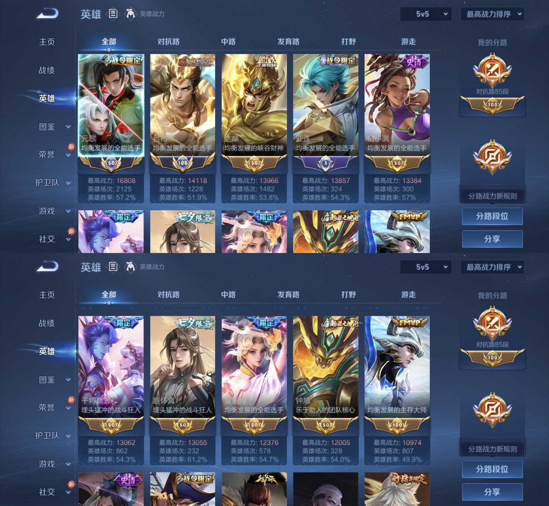 对抗路85段6在榜✅可巅峰✅历史百星巅峰万强强✅1.6万国服元歌吕布达摩亚连姬小满15万战夏洛