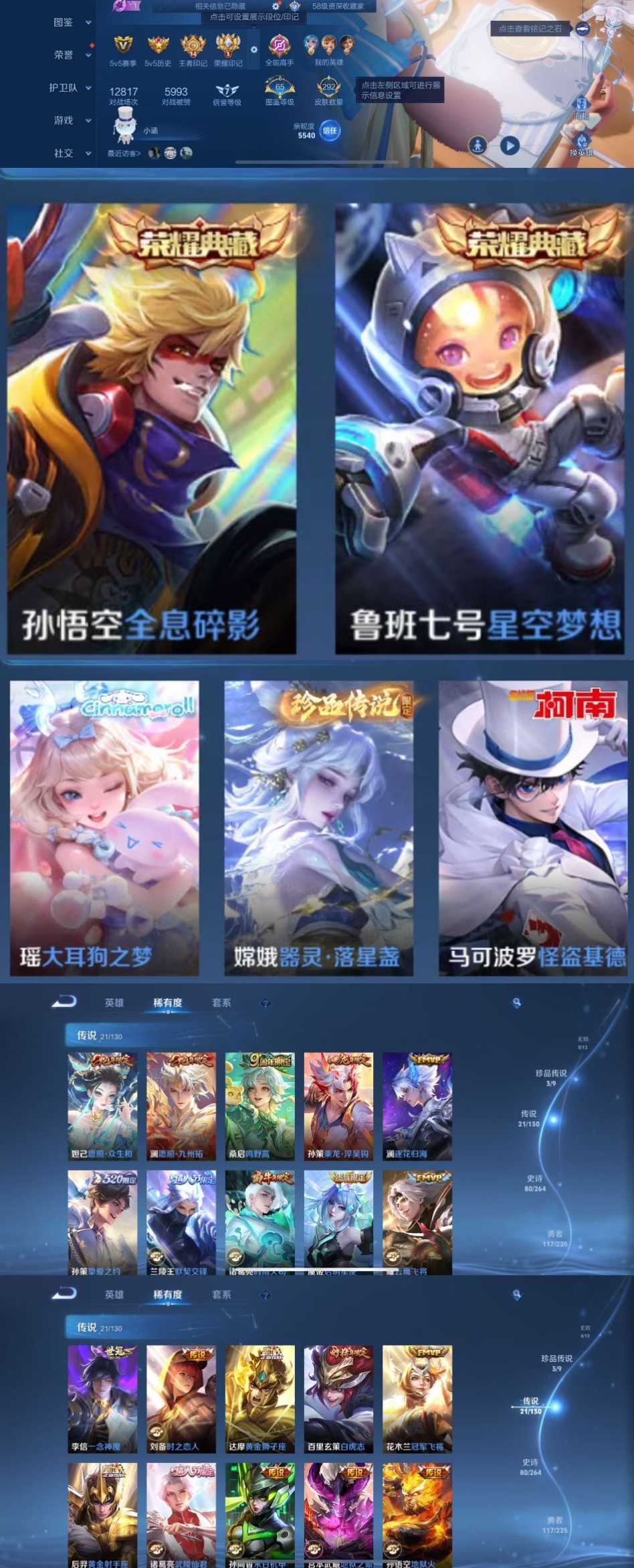 限制: 租号1次及以上 | 撤单率<40%才可租用此帐号装备描述:有时候会登录不上需要再等10分钟,时间到了还登录白玩或者顶号全部改密拉黑处理永不解除,顶号机器会秒禁玩改密,顶号不仅拉黑还没得玩,赚三两块不容易,请理解谢谢。 ❤❤❤❤❤❤❤❤❤❤❤❤❤❤❤❤❤❤ 请勿开挂,挂机,送头,骂人,撤单后游戏等如有违规永久拉黑永不解除。 重置二级密码不要费劲了,号主每天都会上号查看,多行不义必自毙,人在做天在看,多做好事多自律,少做缺德事。 该号英雄127个皮肤292个,典藏2个,珍品传说3个,星传说1个,传说21个,史诗80个,祝你游戏愉快~