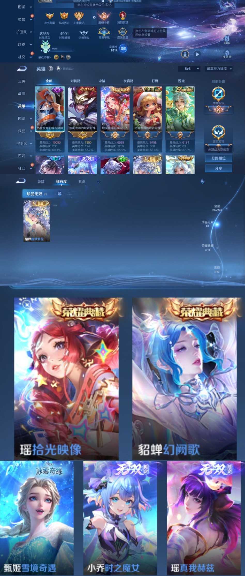 限制: 租号1次及以上 | 撤单率<49%才可租用此帐号装备描述:禁止动背包物品,谢谢~有时候会登录不上需要再等10分钟,时间到了还登录白玩或者顶号全部改密拉黑处理永不解除,顶号机器会秒禁玩改密,顶号不仅拉黑还没得玩,赚三两块不容易,请理解谢谢。 ❤❤❤❤❤❤❤❤❤❤❤❤❤❤❤❤❤❤ 请勿开挂,挂机,送头,骂人,撤单后游戏等如有违规永久拉黑永不解除。 重置二级密码不要费劲了,号主每天都会上号查看,多行不义必自毙,人在做天在看,多做好事多自律,少做缺德事。 该号英雄126个皮肤266个,珍品无双1个,典藏2个,无双3个,珍品传说1个,星传说2个,传说15个,史诗73个,祝你游戏愉快~