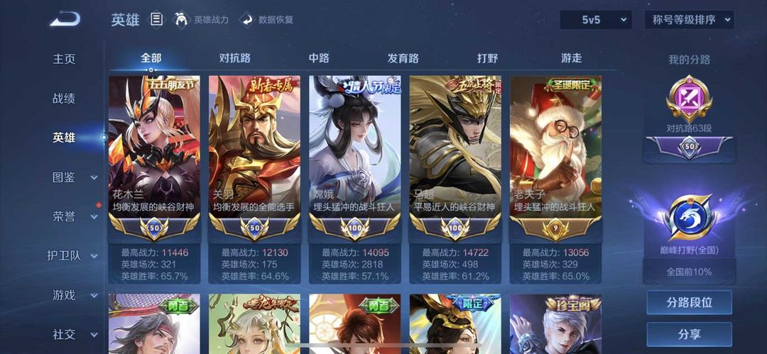 历史1.4w小国马超嫦娥⭐1.2w小国关羽⭐小国花木兰⭐63段对抗路⭐高质量皮⭐带妹必备⭐五排开黑首