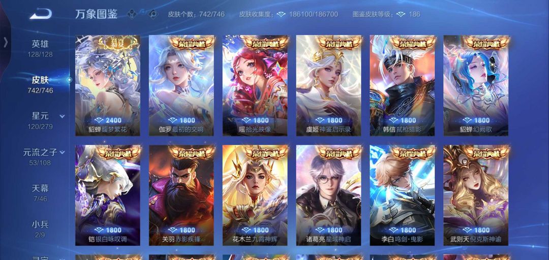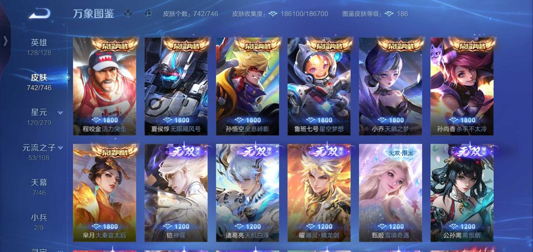 【无禁言】满皮大国瑶孙昭君小乔❤️十国服女神号❤️凯无双神罪❤️满皮87段中74段游走新皮秒补