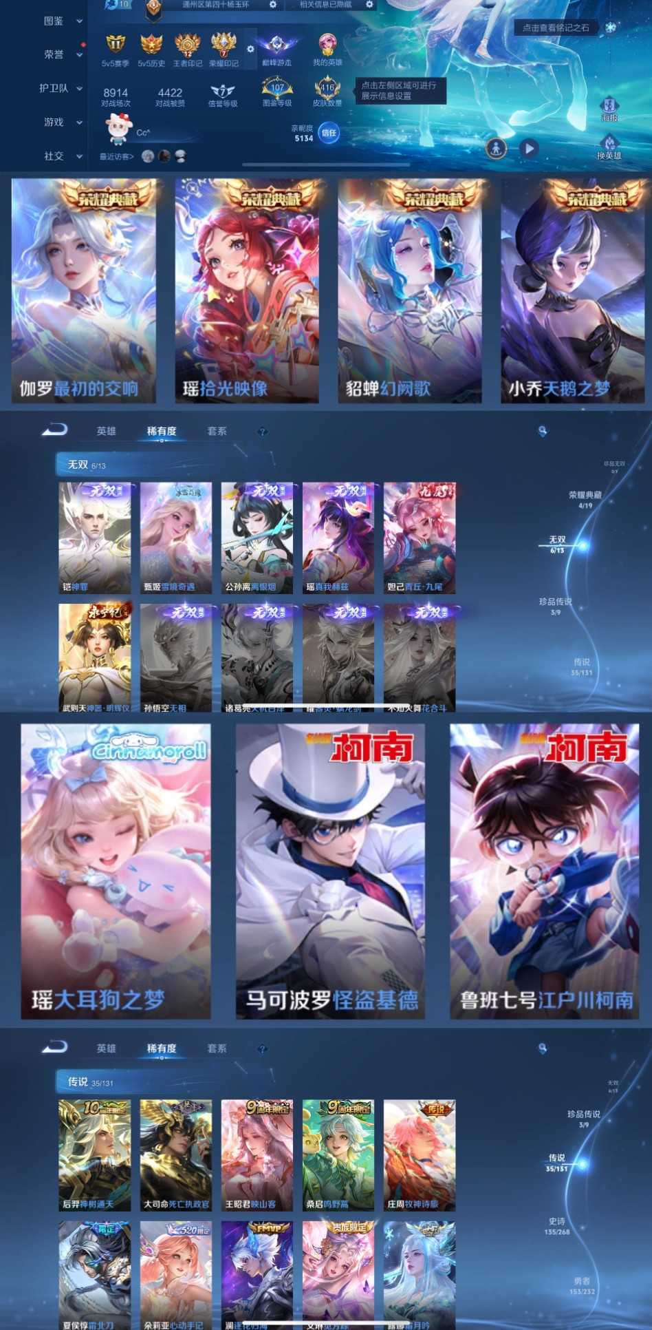 漂亮女号✨金标瑶✨6无双3珍品35传说✨神罪死亡执政官✨大耳狗最初的交响✨雪境奇遇紫瑶✨全柯南映山客