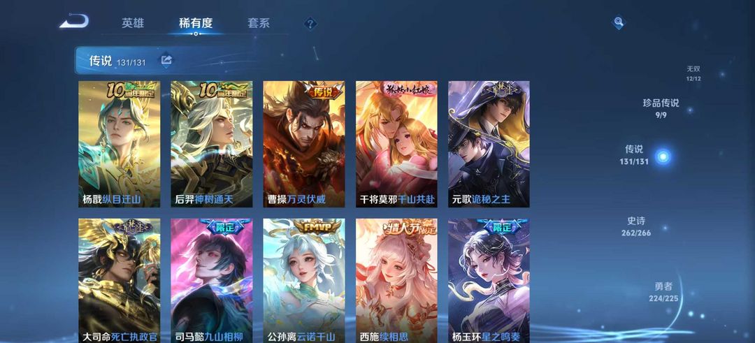 无双贵十野王男神满皮号✨ 小国刘备 云中君 赵怀真✨满无双满珍品✨有小兵皮✨163按键 多天幕