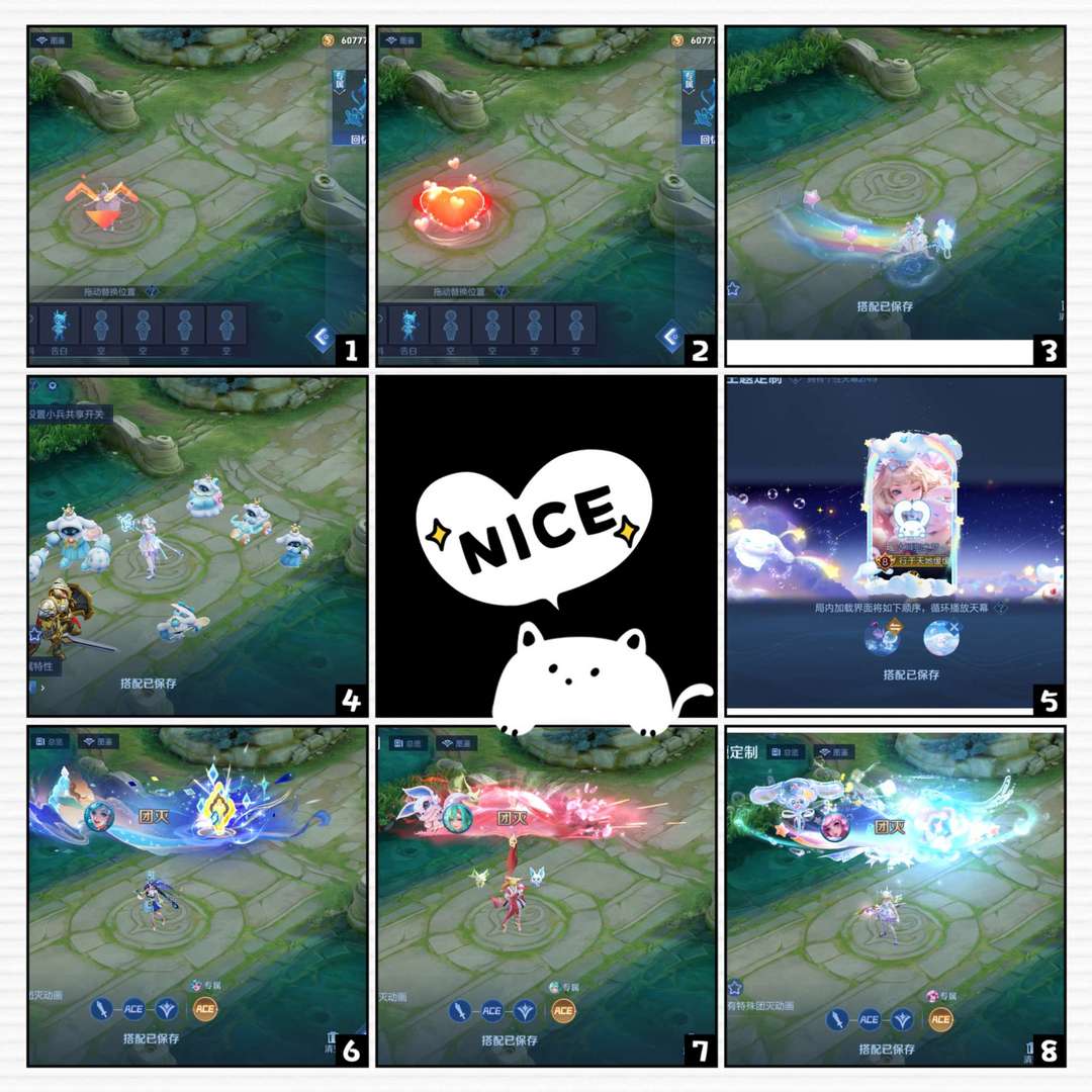 装备描述:软辅皮很多,大乔少司缘全皮,蔡文姬朵莉亚差一,局内播报小兵拖尾回城都很好看 该有的皮肤按键都有,买了两页多 禁止挂机