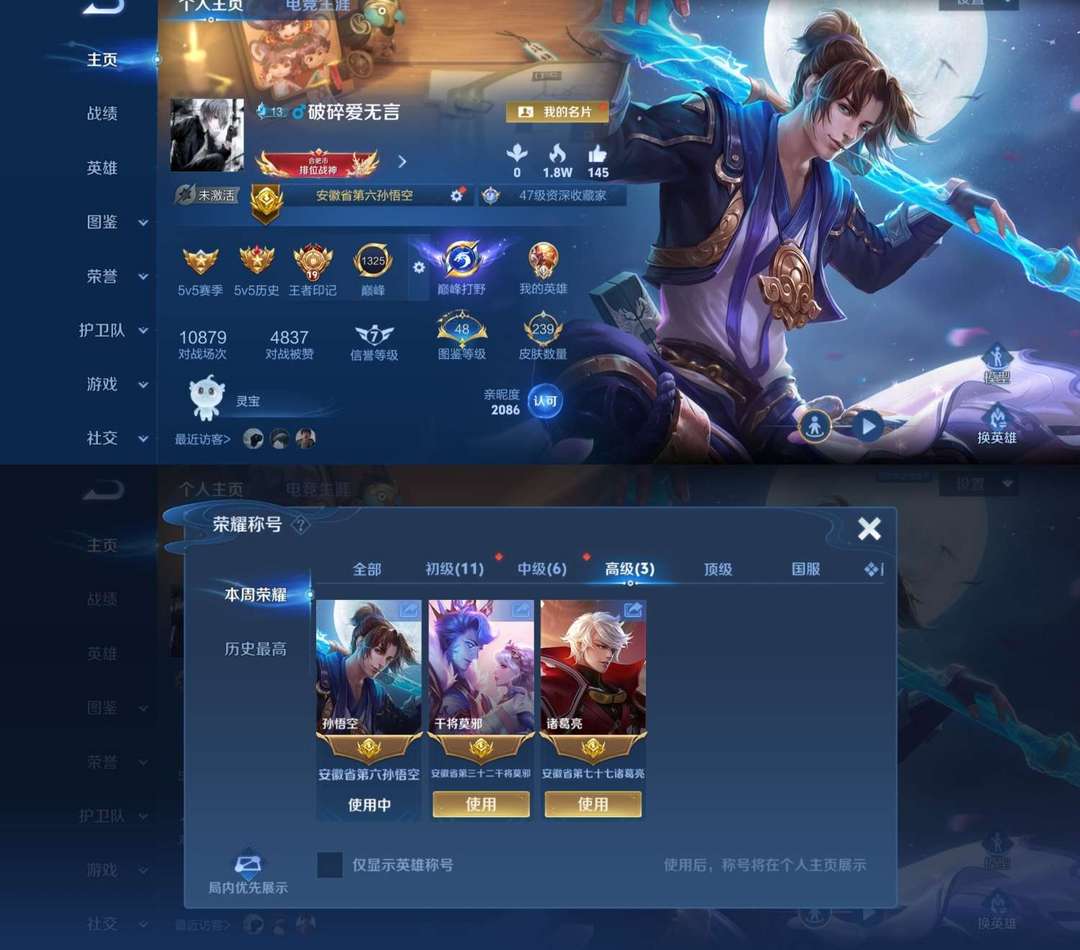 4月在榜多省标猴子/干将/诸葛亮❤️至尊宝❤️可排禁巅❤️巅峰银框❤️历史小国标猴子/干将