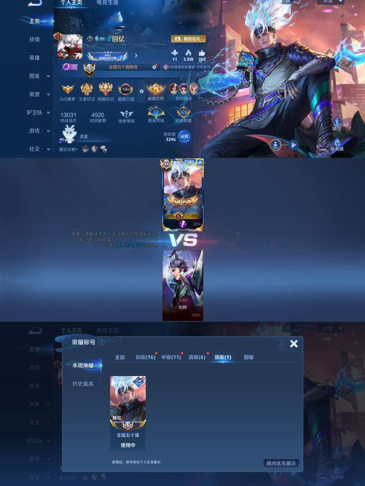 【V8 326皮】巅峰万强7181名❤️11月在榜全国标50强小国服韩信❤️历史小国标马超❤️禁巅峰