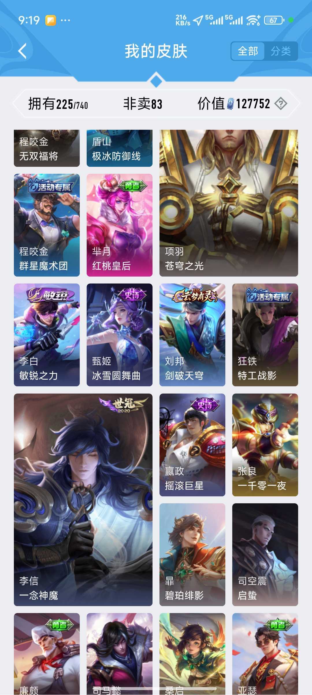 ❤️优质带妹号❤️可排位❤️v7❤️225皮肤❤️124英雄