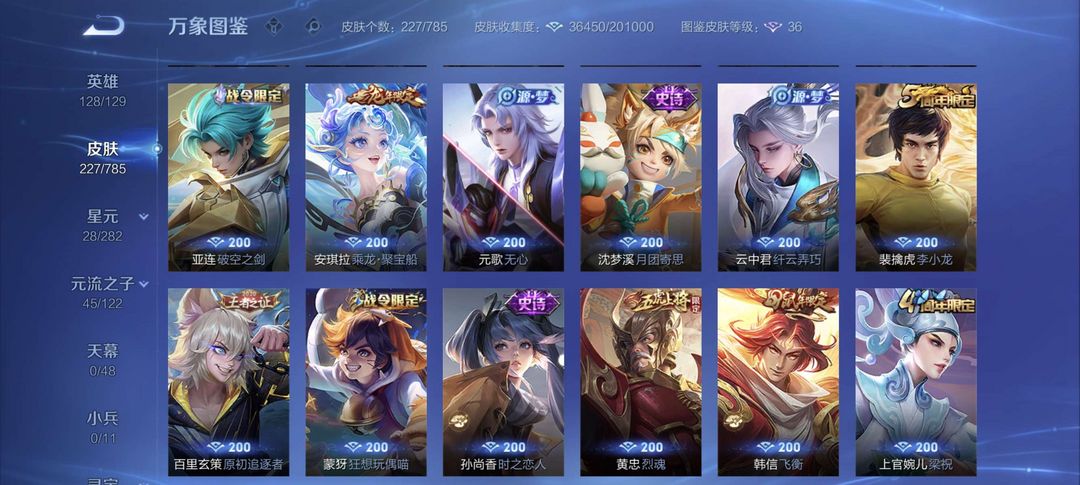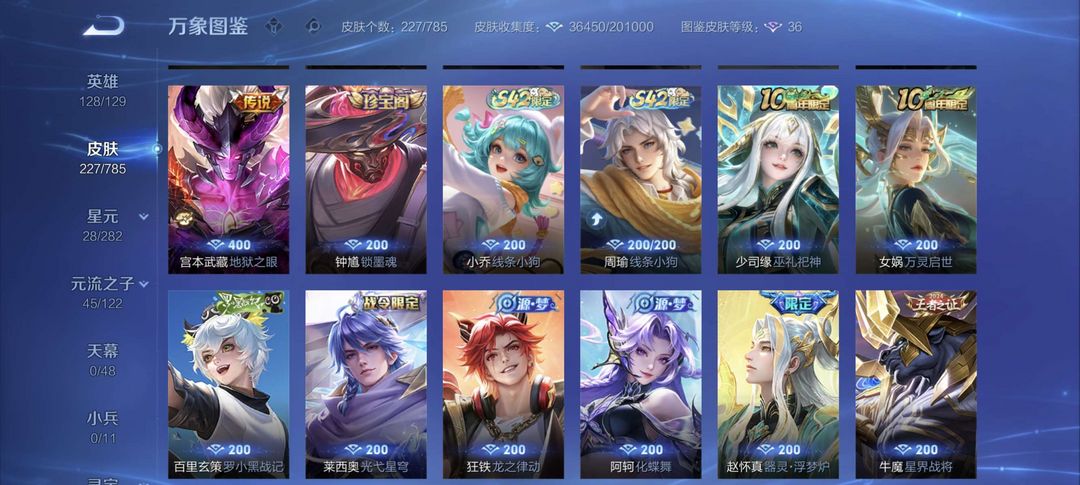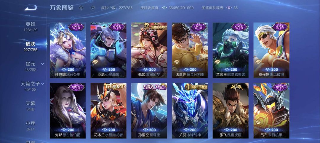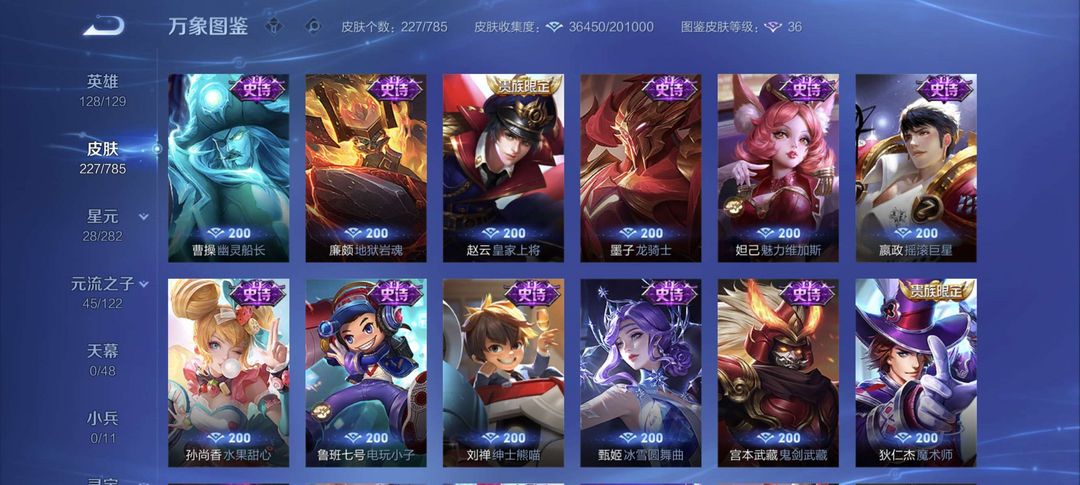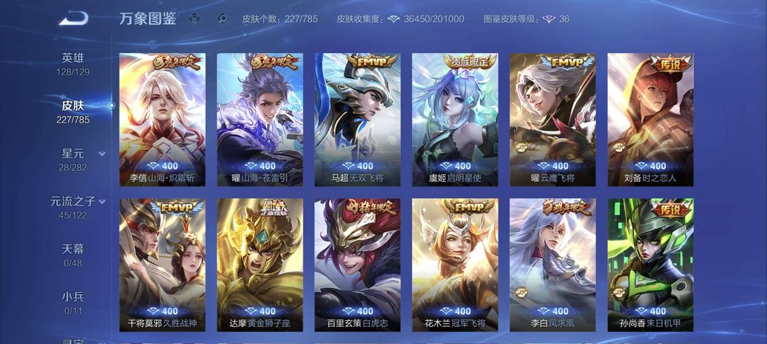 带妹号,各种热门野王皮肤,白虎志,韩信典藏,九州拓,绝版神奇女侠,齐天大圣,马超FMVP
