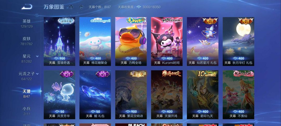 v10无双李信无双问心剑琪拉颠倒童话千魔归渊2小兵Hello kitty全套13传说星元有全屏天幕