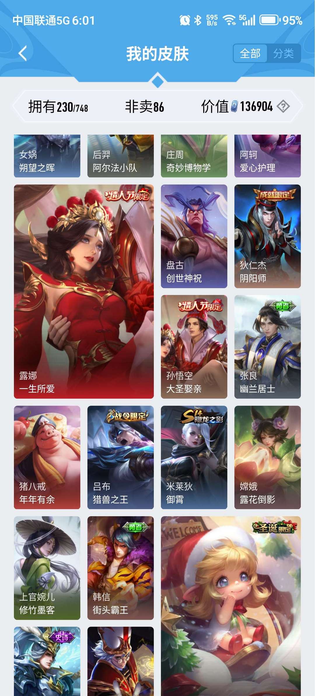 拥有限定皮肤,请不要毁号,剩下的皮肤自己上去看看