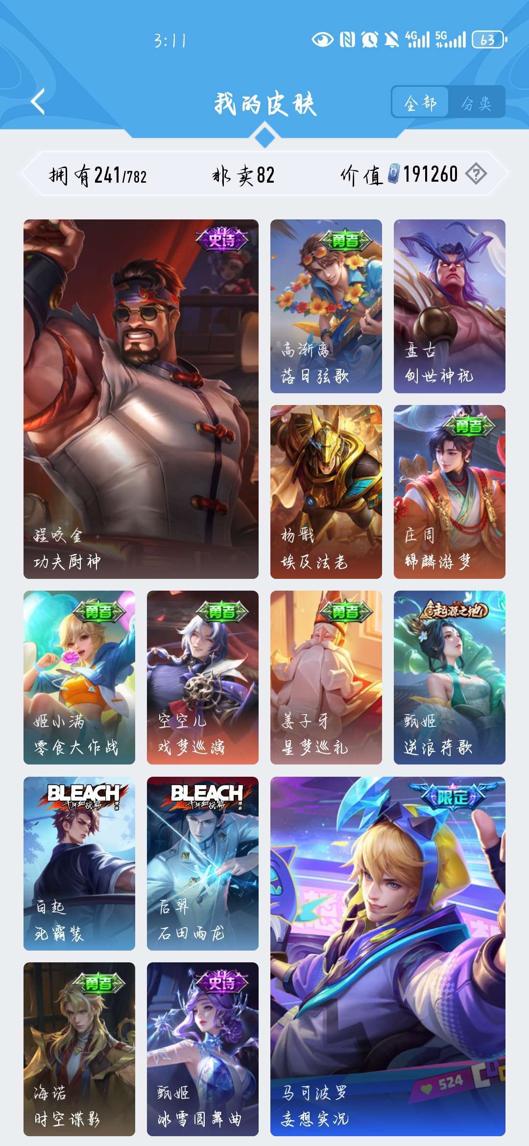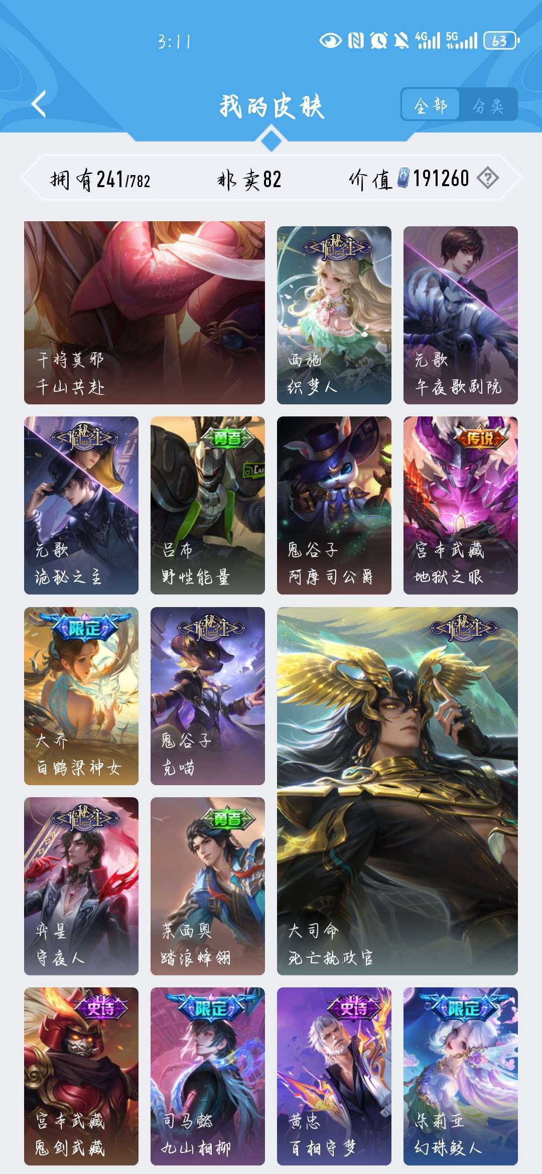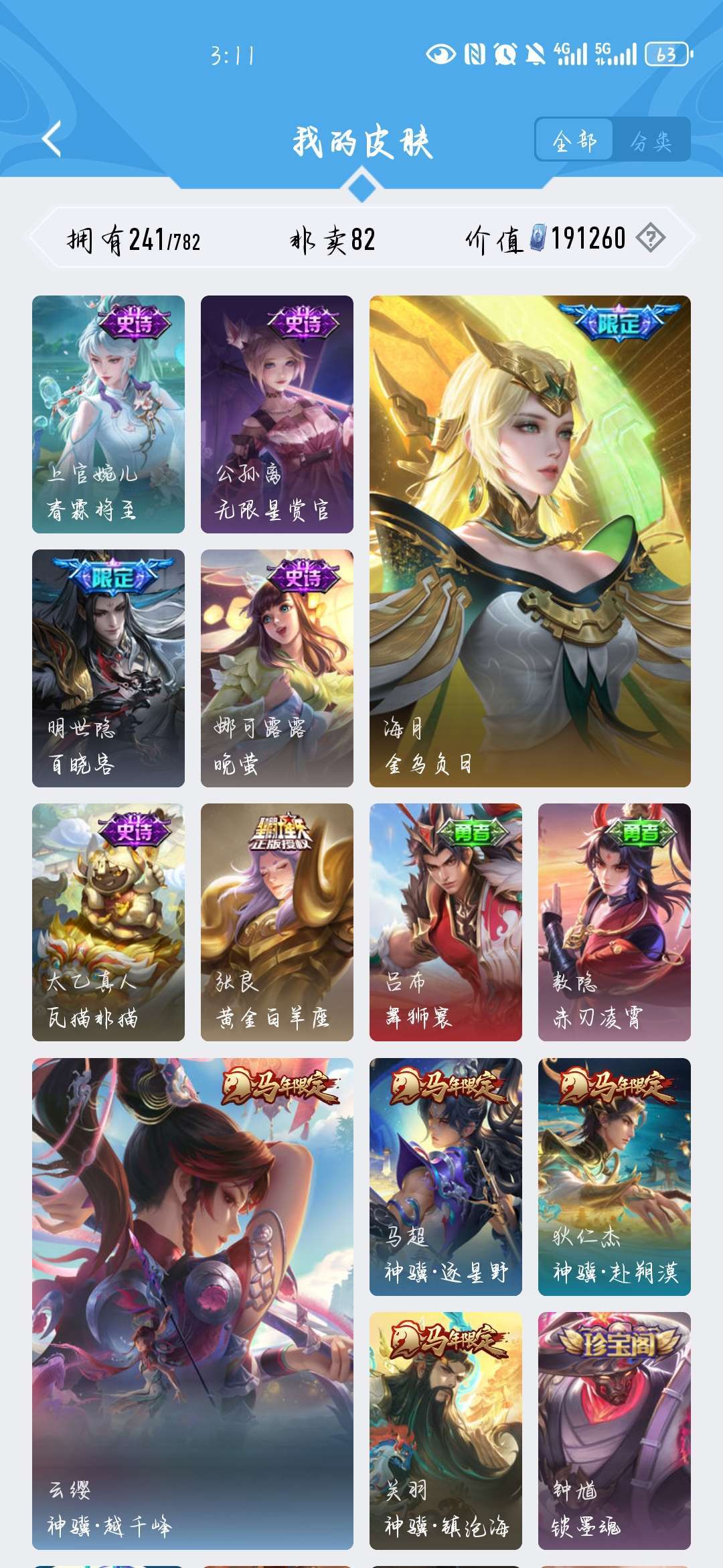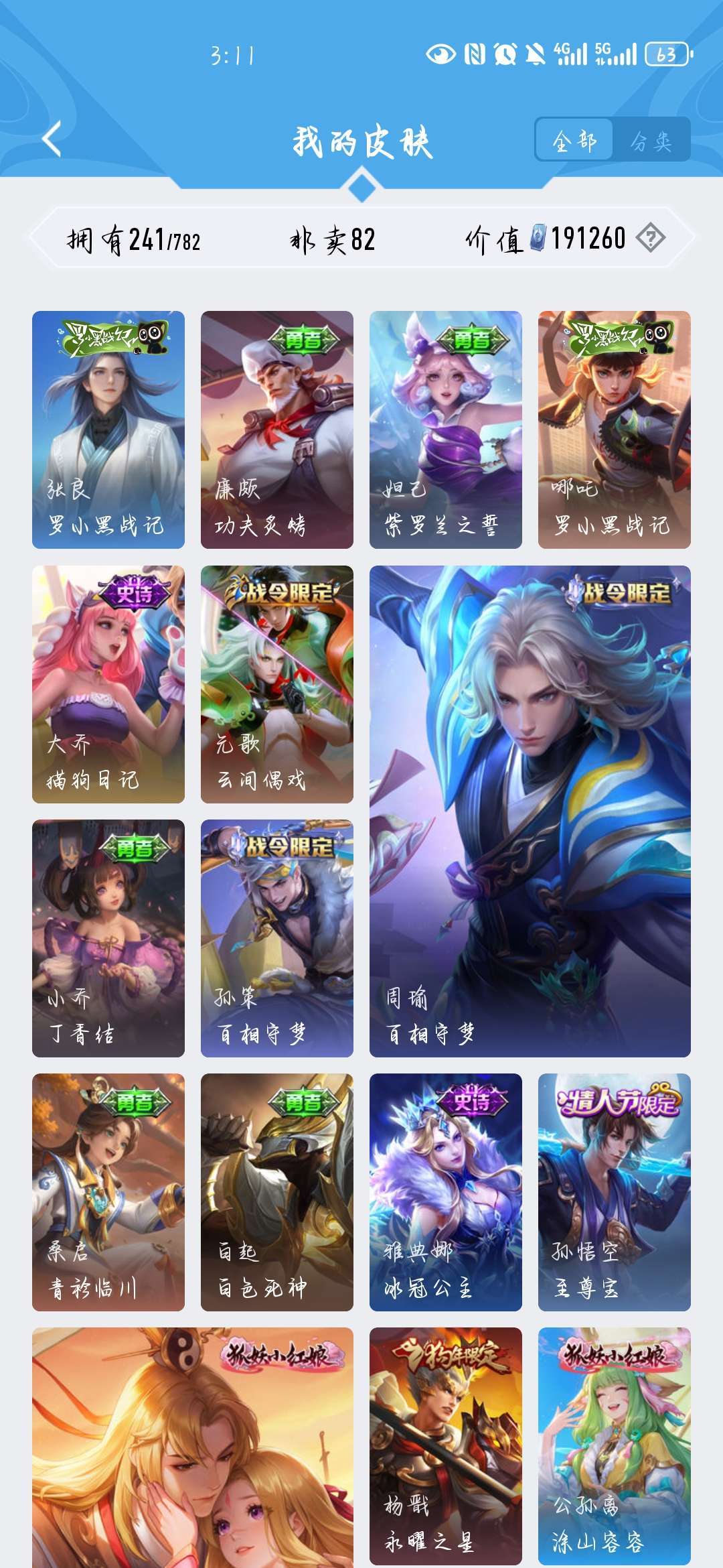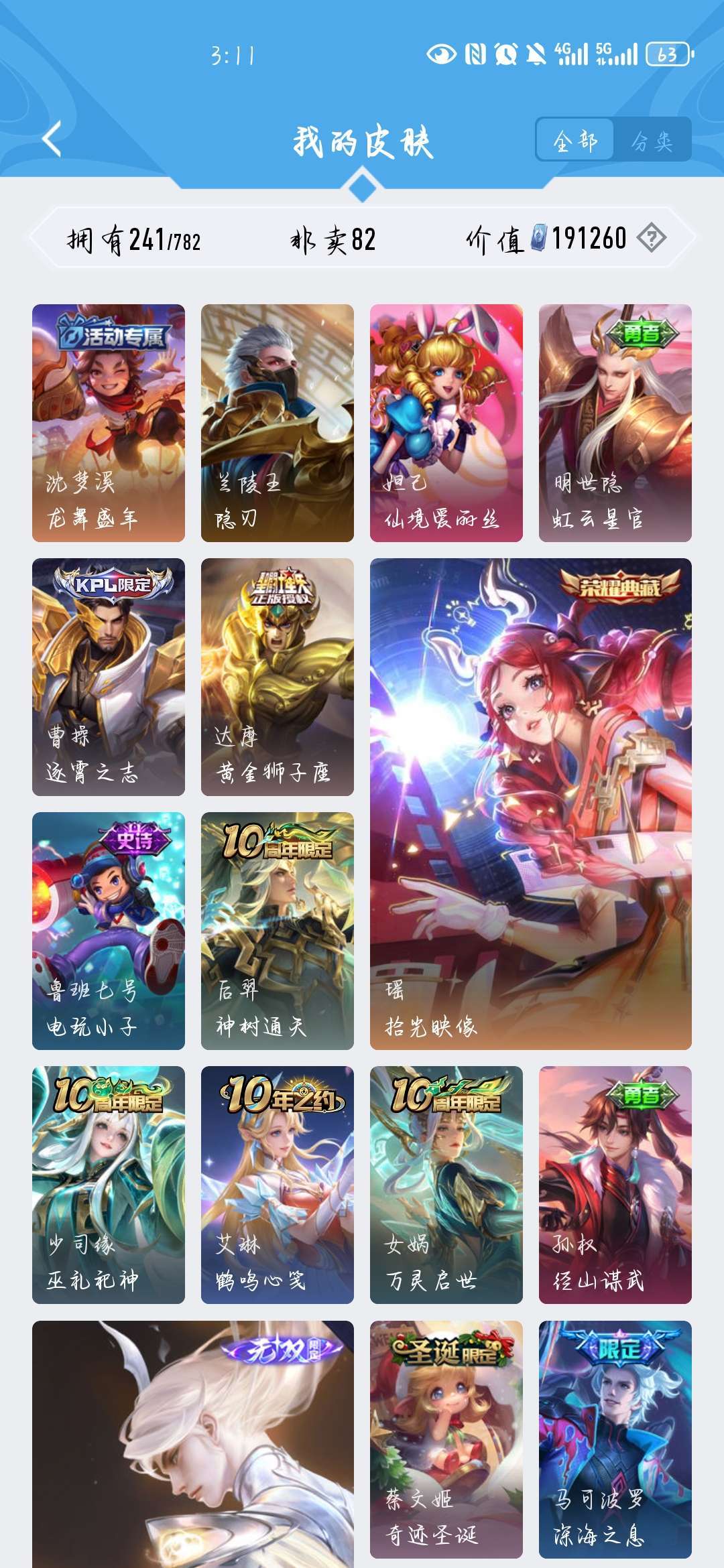 瑶荣耀典藏,凯无双,嫦娥珍品传说,元歌大司命诡秘之主,马年全年限,至尊宝,永曜之星,深海之息,水母