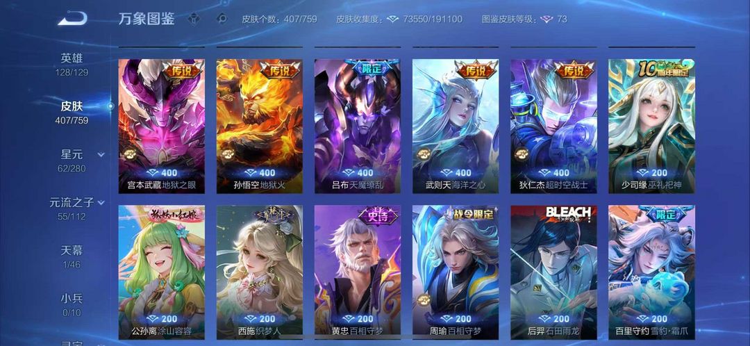 装备描述:407皮肤貂蝉慕夏❤5典藏小乔无双凯典藏❤暃死神联动大耳狗库洛米珍品❤43传说蛇年限定诡秘之主联动皮43传说皮 飓风号