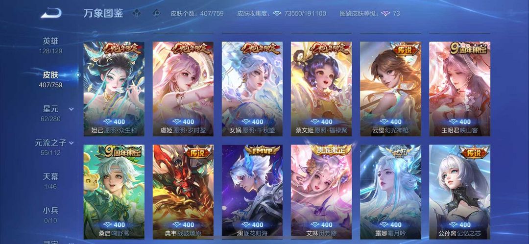 407皮肤貂蝉慕夏❤5典藏小乔无双凯典藏❤暃死神联动大耳狗库洛米珍品❤43传说蛇年限定诡秘之主联动皮