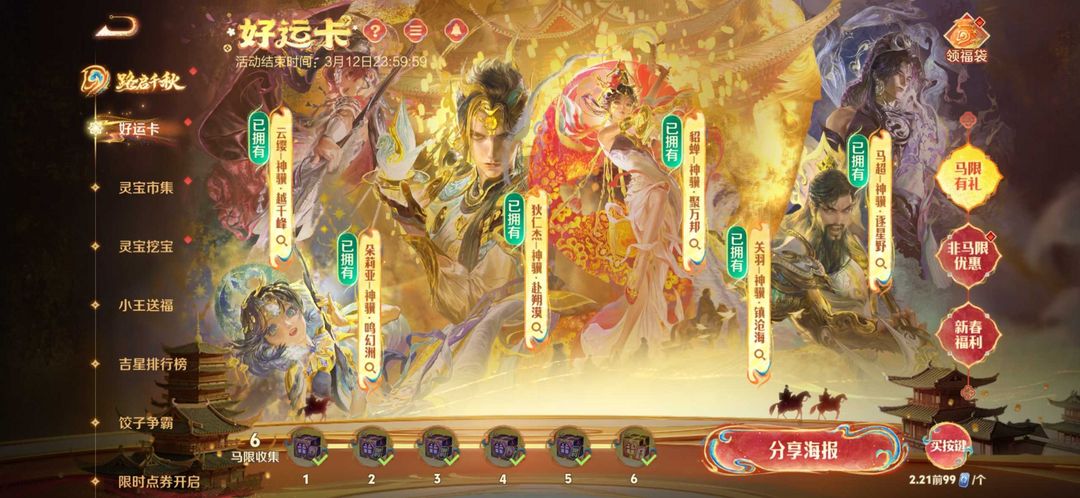 马年全限定马年消费礼包拉满貂蝉馥梦繁花美神降临全套吕布千魔归渊猴子无相全龙年全蛇年4星元永久灵宝