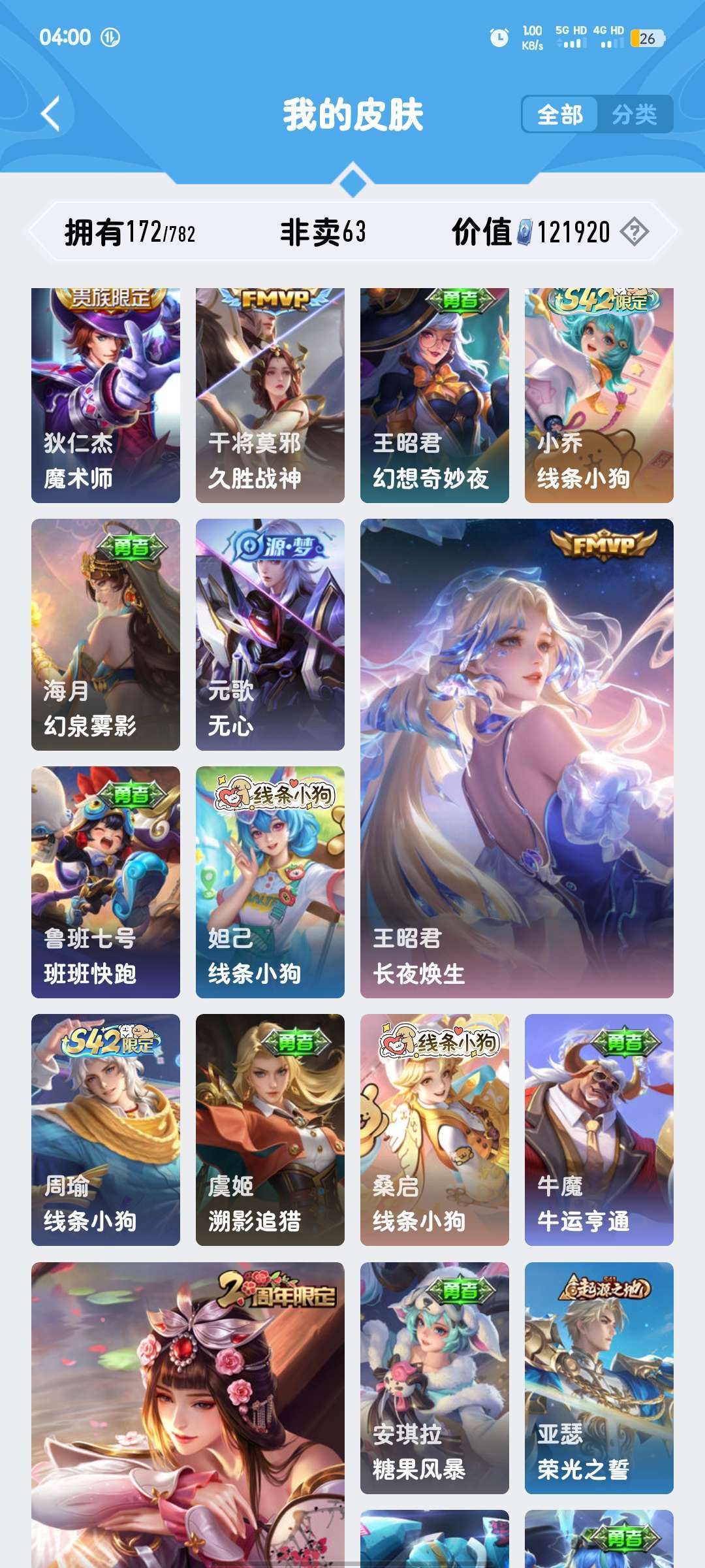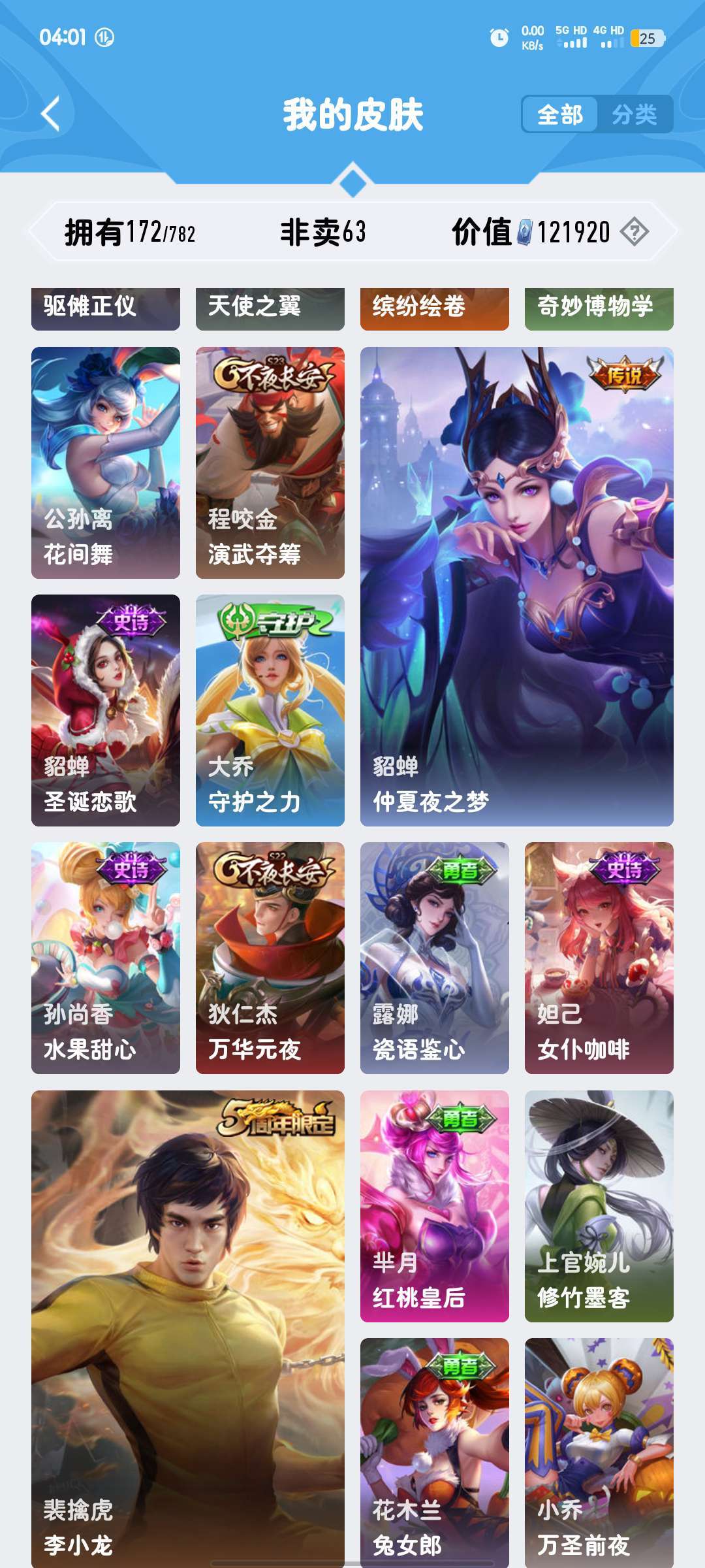 【安卓q区v6】女号♥荣耀典藏天鹅之梦♥朵丽亚马年皮肤♥蛇年女娲,裴擒虎李小龙注:次号无瑶