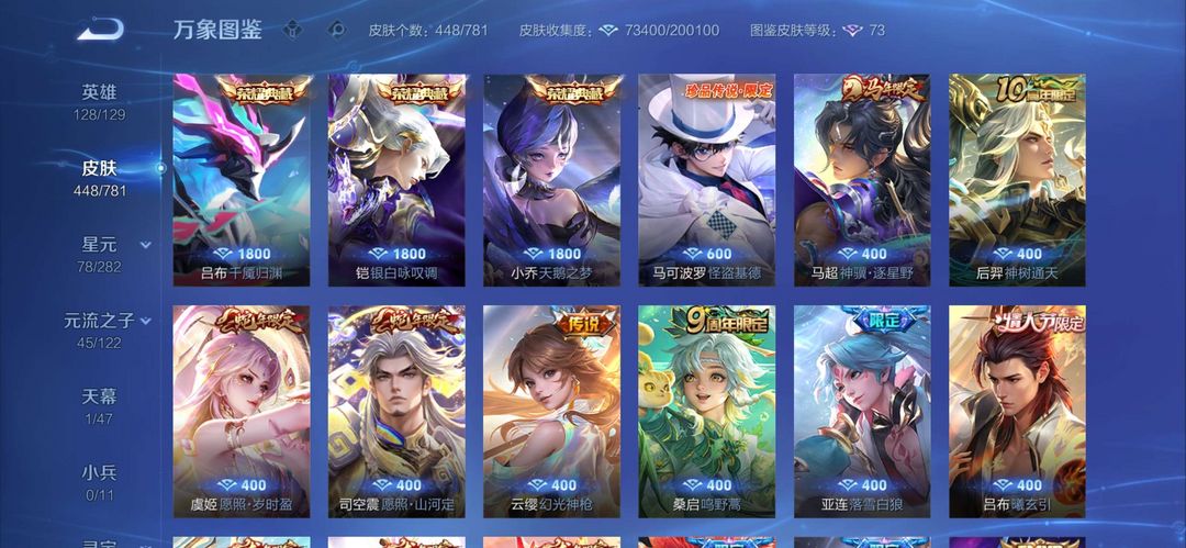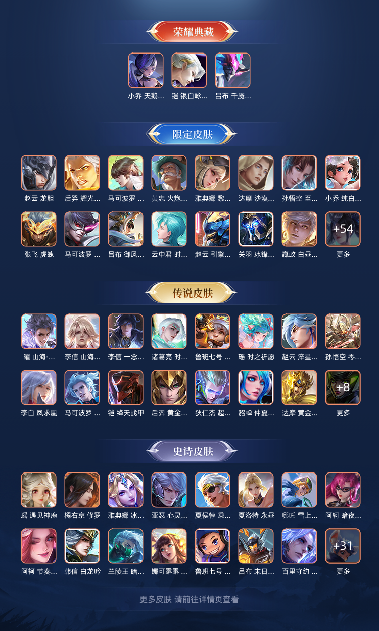 吕布新荣耀典藏皮3典藏皮 怪盗基德 梅西 1.1马超 超大库存