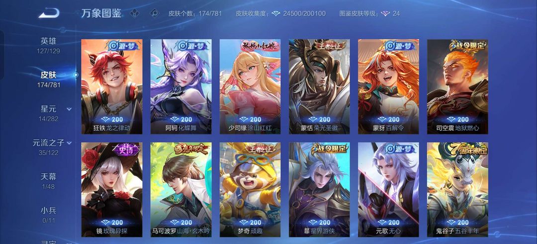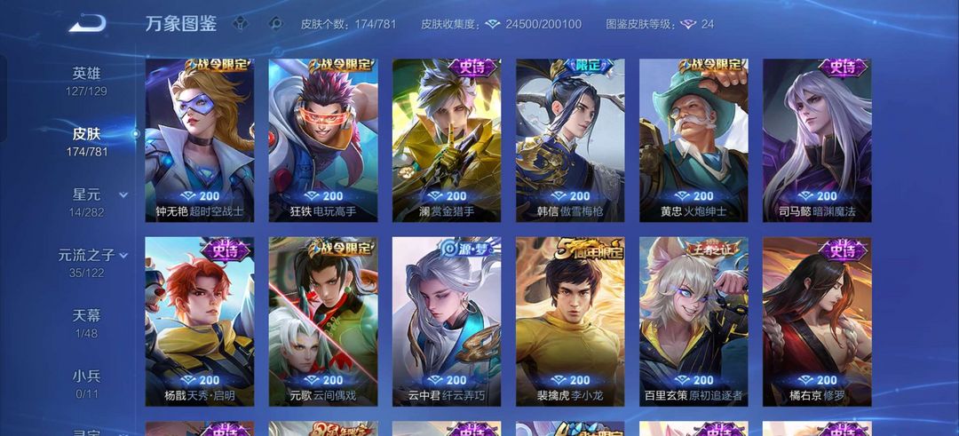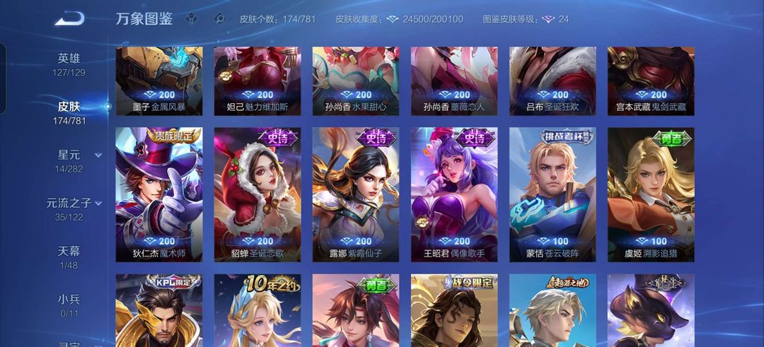金标司马懿,带妹,吕布荣耀典藏,司马懿全皮,李信限定,大多数打野都有高质量皮肤