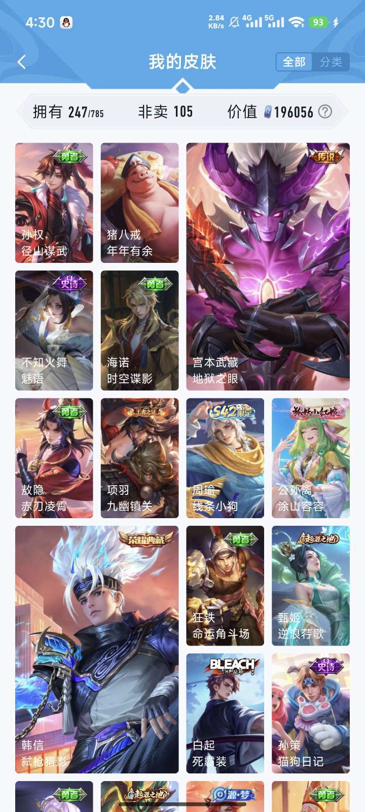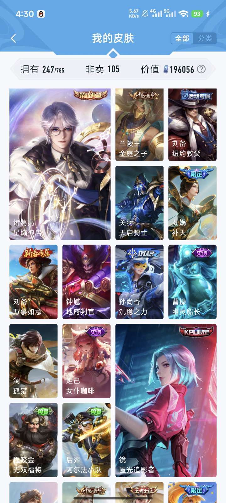 双荣耀典。弑枪猎影。星域神启。怪盗基德。全精品皮肤满信誉积分可排位