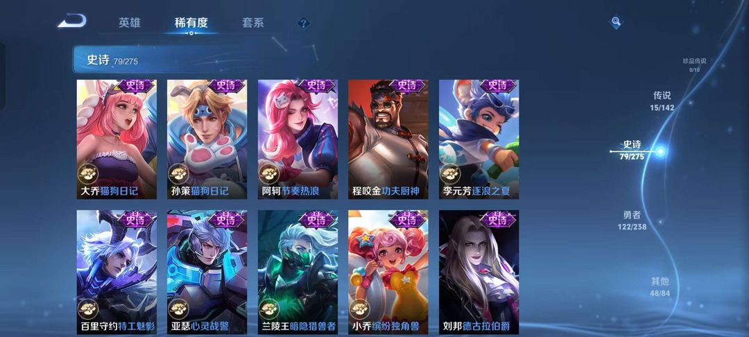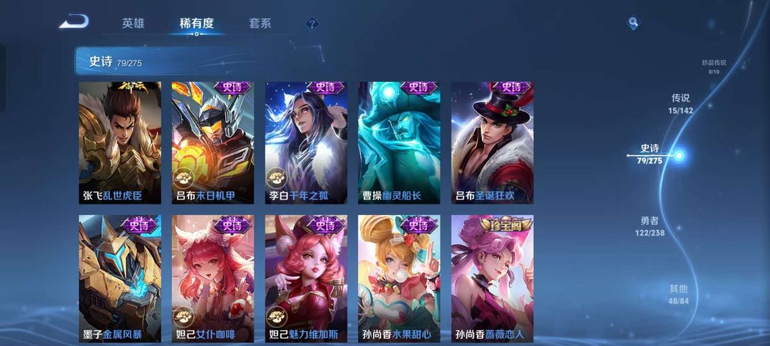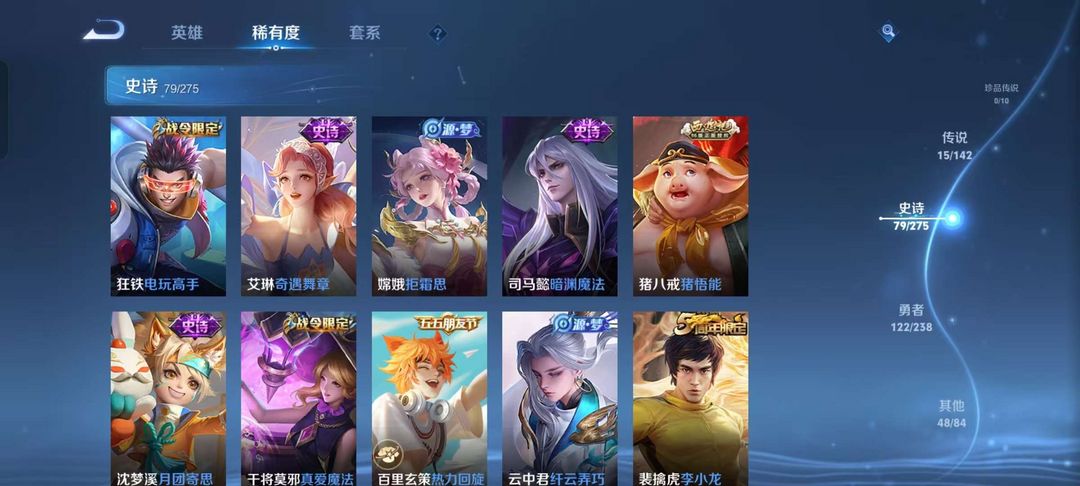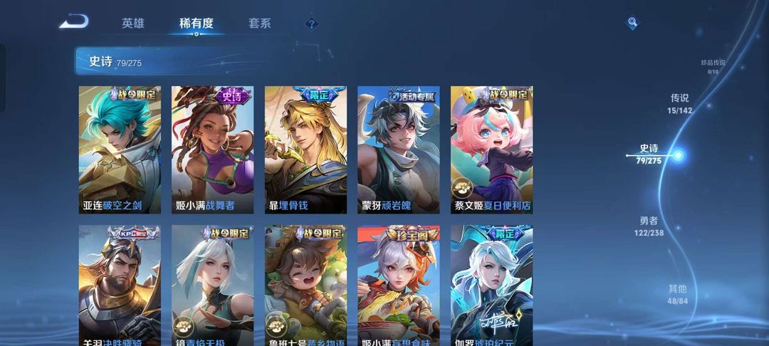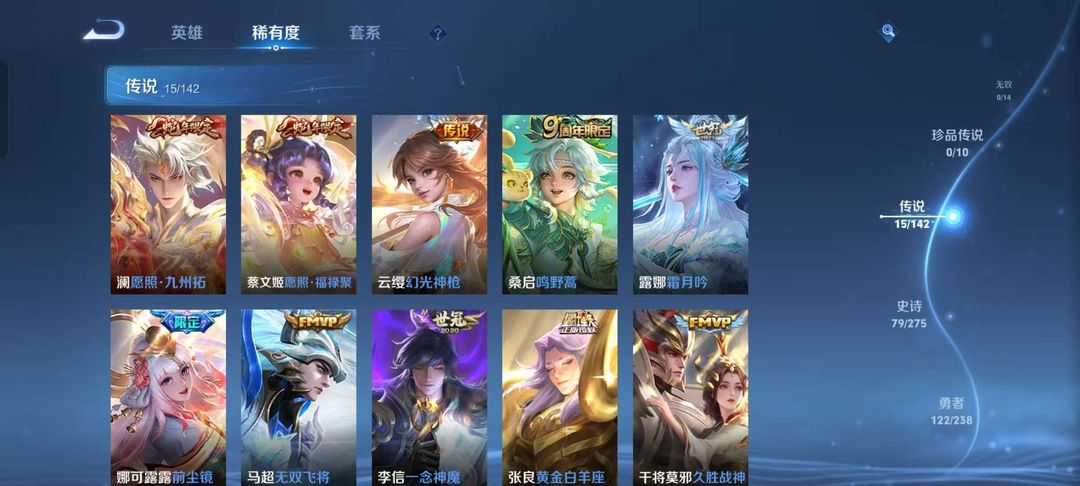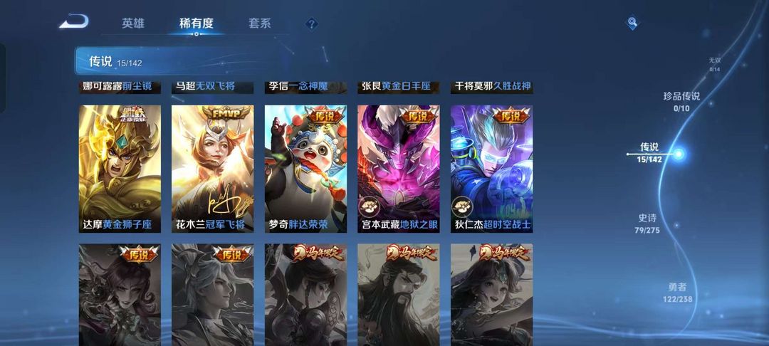 贵族7 1典藏 15传说 78史诗鸣剑曳影✅️马超无双飞将✅️霜月吟✅️黄金狮子座✅️蛇年澜蔡文姬