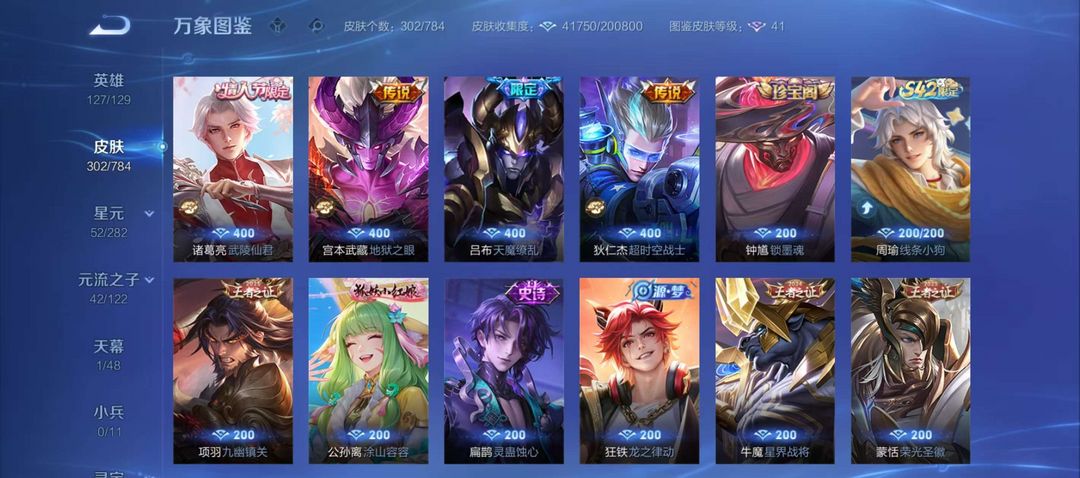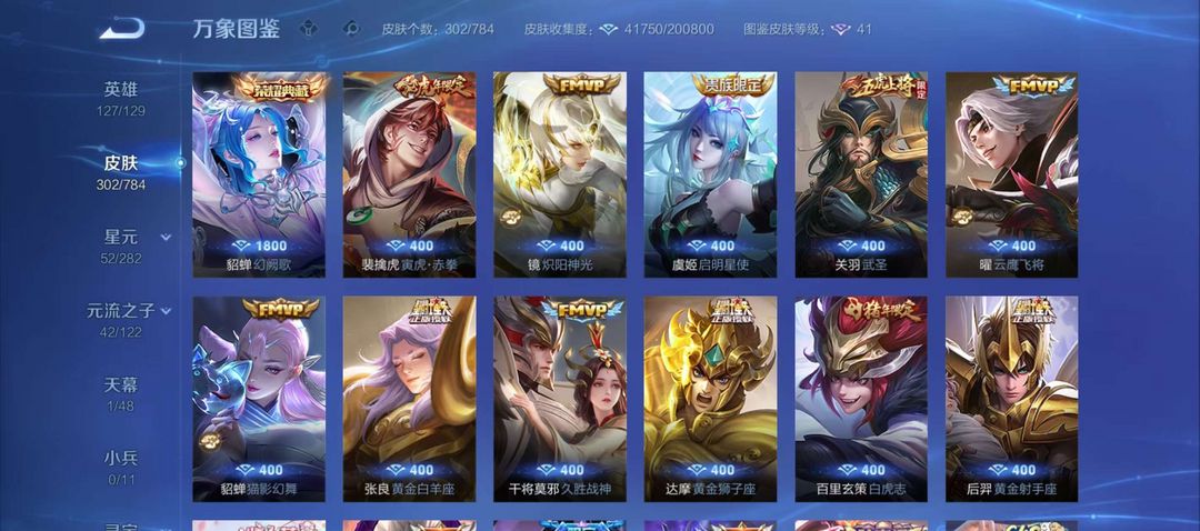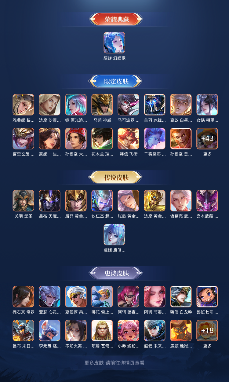 满铭文,武陵仙君,典藏貂蝉等稀有皮肤