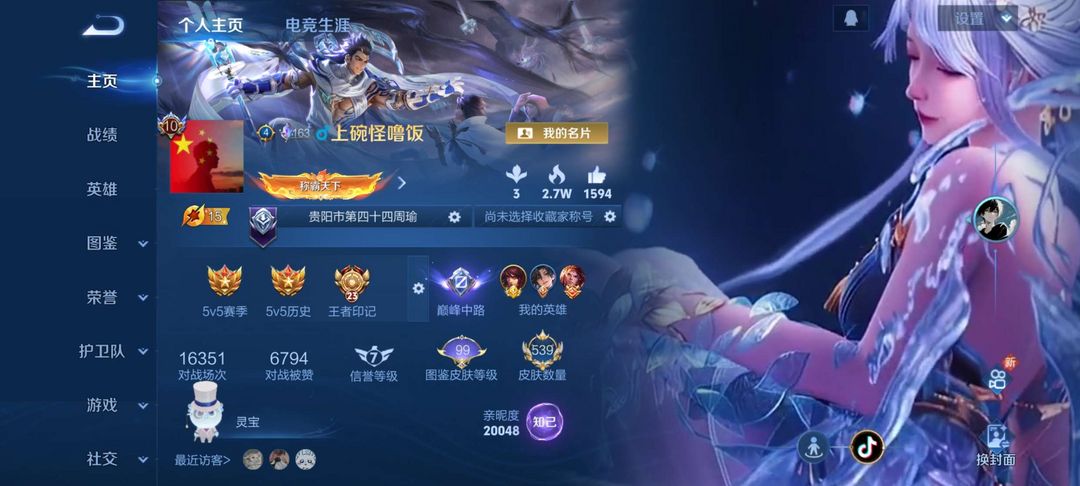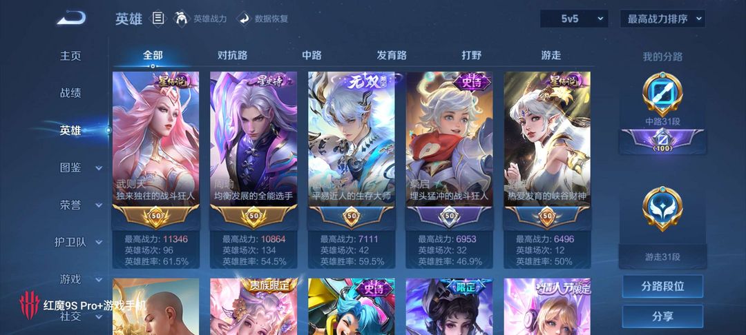 V10,荣耀典藏猴子孙尚香武则天夏侯惇虞姬,无双皮,鲁班马克李白小乔诸葛亮所有英雄均有熟练度