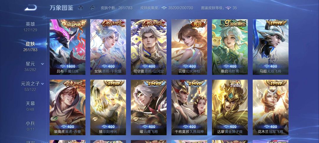 吕布荣耀典藏,女娲,司空震蛇年限定,裴擒虎虎年限定,至尊宝